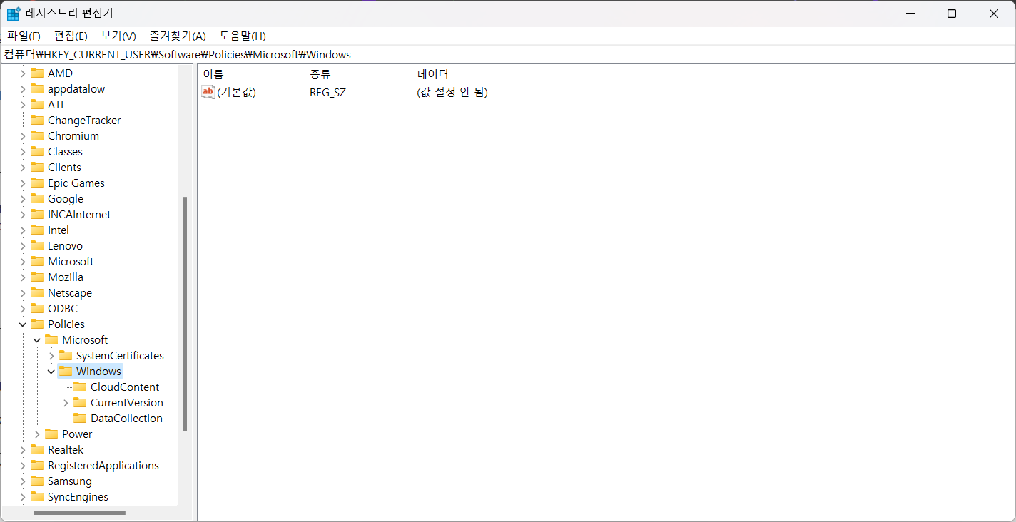 HKEY_Current_User\Software\Policies\Microsoft\Windows 경로로 갑니다. 그리고 Windows 폴더를 오른쪽 클릭한 후 '새로 만들기' - '키'를 선택하고 이름을 WindowsCopilot 이라고 넣습니다. (띄어쓰기 없습니다)