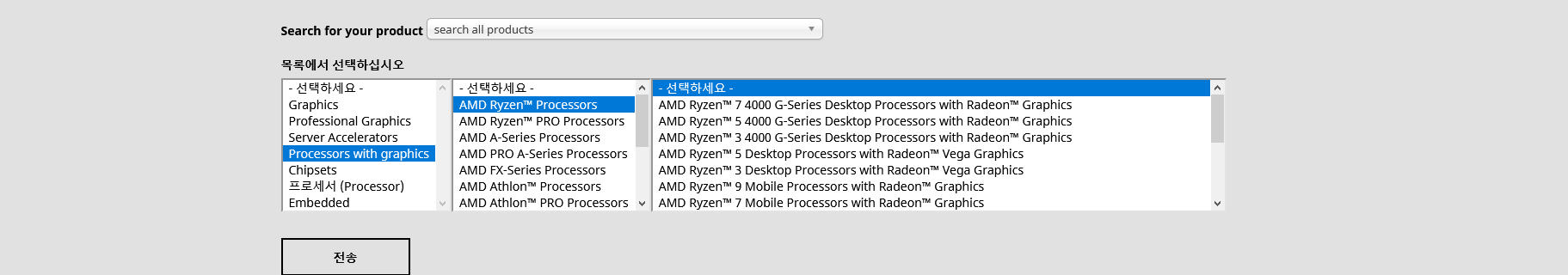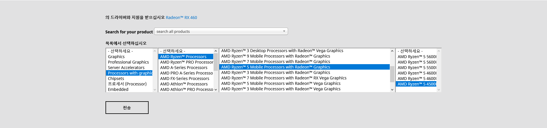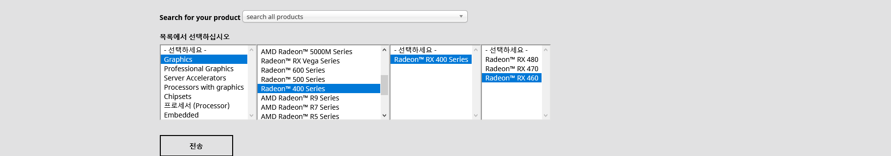 Radeon 400 Series - Radeon RX400 Series - Radeon RX460 순으로 골랐습니다. 그리고 [전송]을 누릅니다.