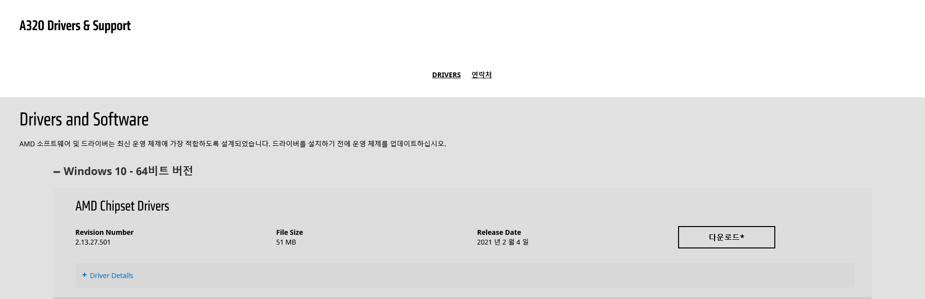 그러면 위와 같은 화면을 보시게 될텐데 여기에서 '다운로드'를 누르시면, AMD 칩셋 드라이버가 다운로드 됩니다. 이걸 설치하시면 됩니다.