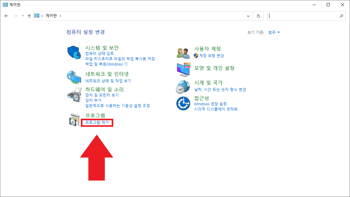 그리고 [프로그램]에서 [프로그램 제거]로 바로 들어가 줍니다.