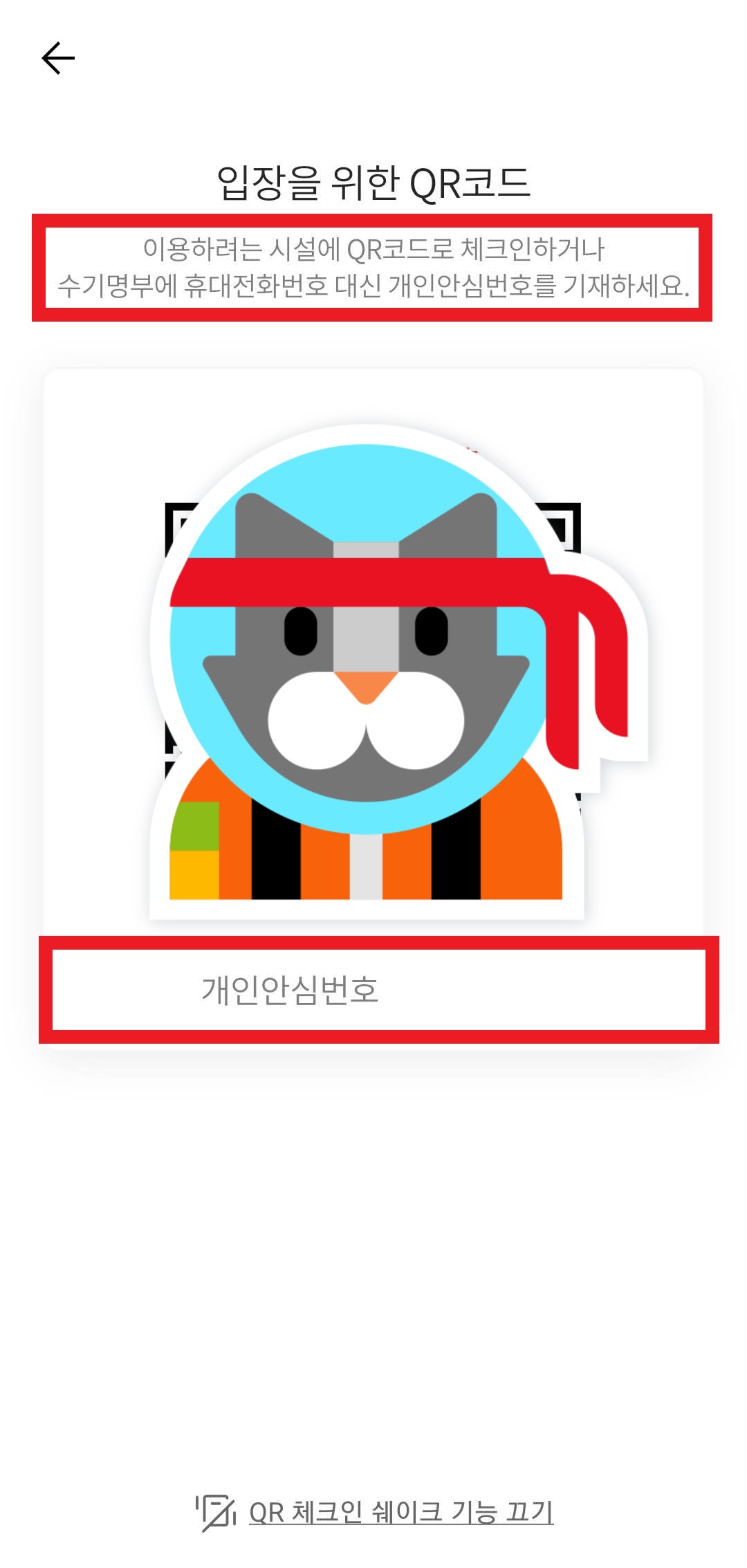 참! 그런데 카톡 흔들어서 QR코드 인증 띄우기, 혹은 빅스비로 한방에 QR 체크인 하기 기능은 알고 계신가요?