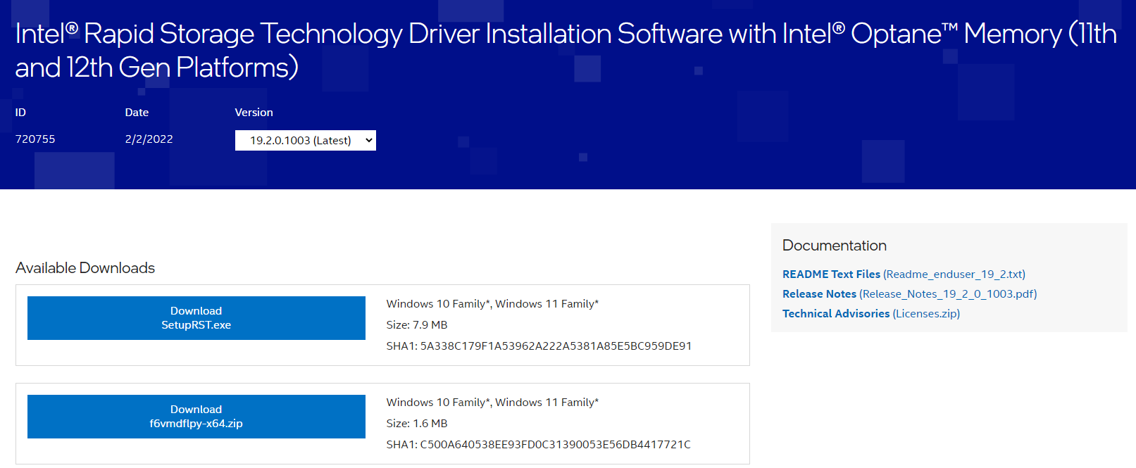 각 제조자 마다 홈페이지를 통해서 드라이버 다운로드를 제공하니까, 구매하신 노트북 제조사 홈페이지를 통해서 인텔 빠른 스토리지 기술 드라이버를 받아두시기 바랍니다.