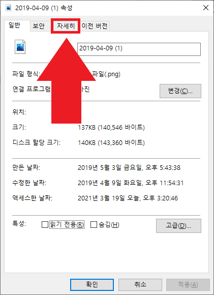 자, 사진 파일을 오른쪽 클릭해서 [속성]을 눌러 봅시다. 요렇게 나오겠죠