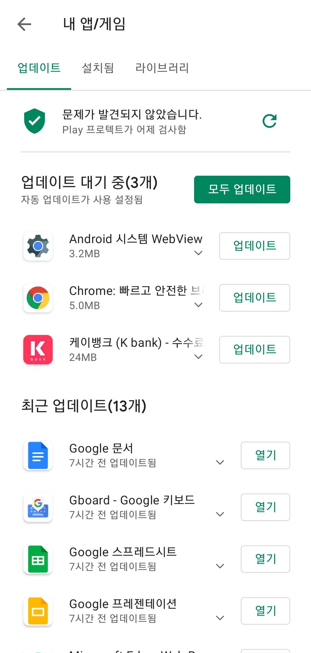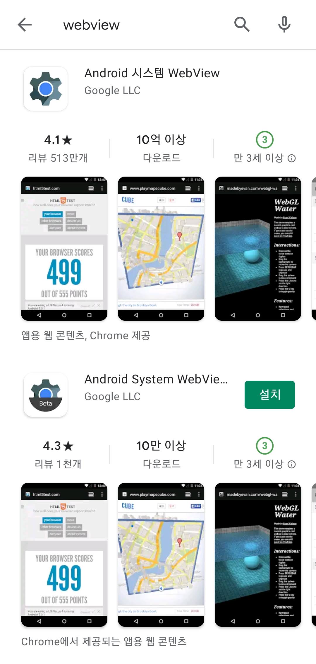 현재 플레이 스토어에 웹뷰와 크롬의 업데이트가 올라왔습니다. 문제가 있으셨던 분들은 플레이 스토어로 가셔서 최신 버전으로 업데이트 하시면 됩니다. 기존에 웹뷰 업데이트 삭제하셨던 분들도 다시 업데이트를 진행하시면 최신 버전으로 바로 올라갑니다