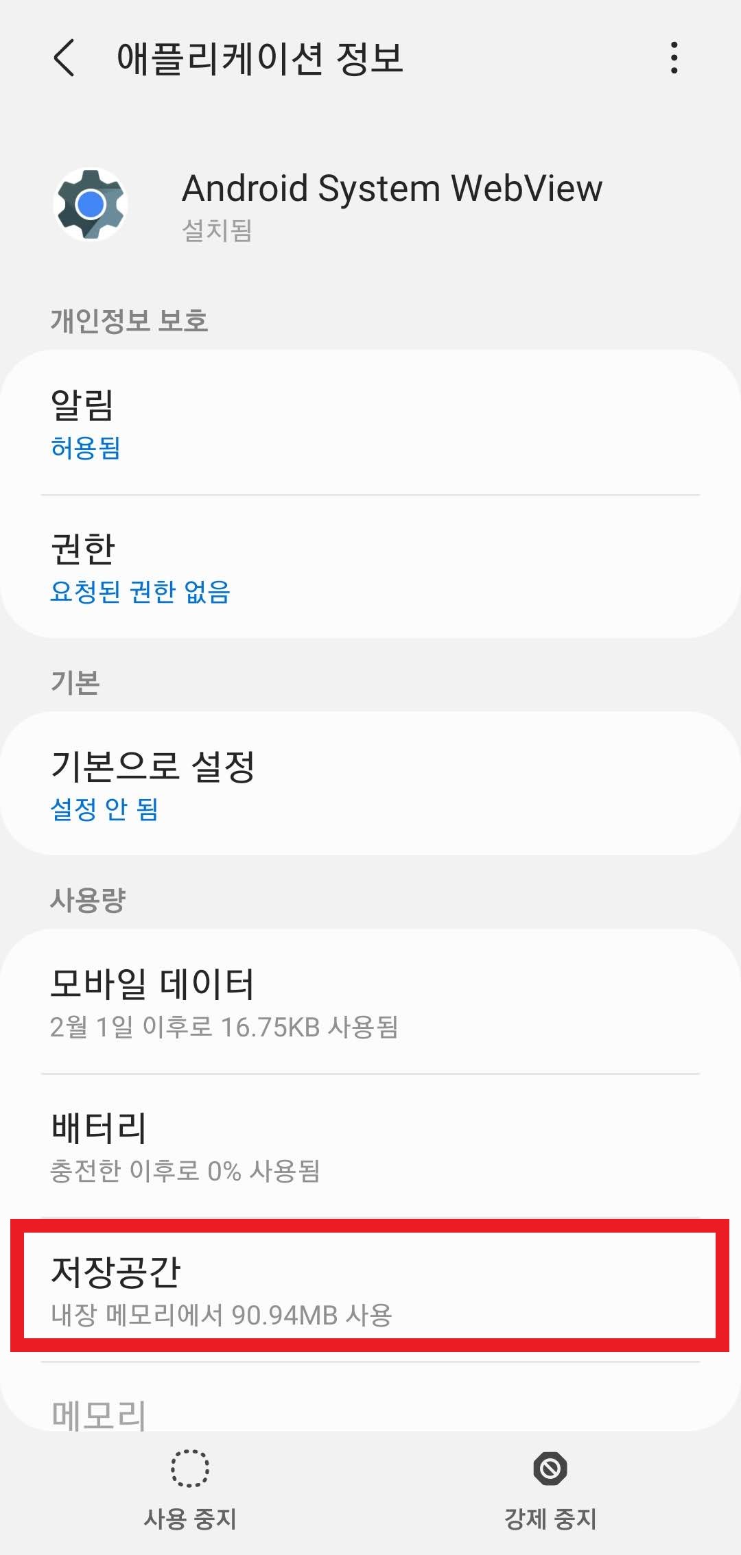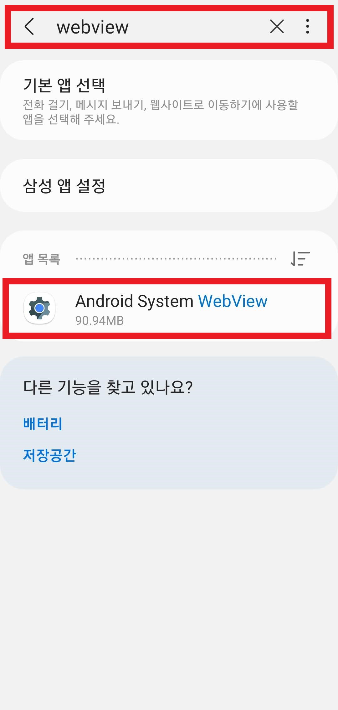 [앱 정보]에서 검색 창에 [WebView] 검색 후