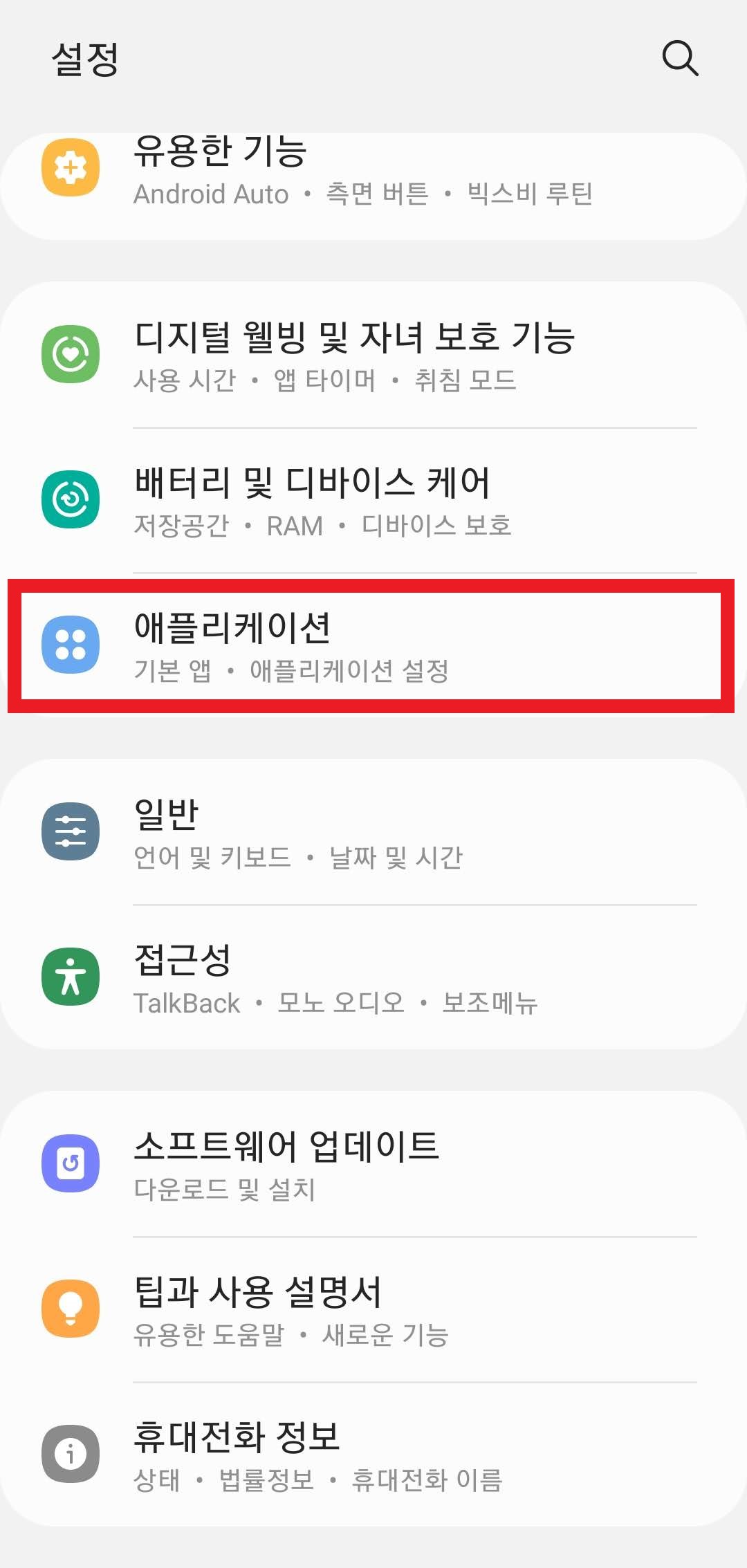 [설정] - [애플리케이션]으로 이동