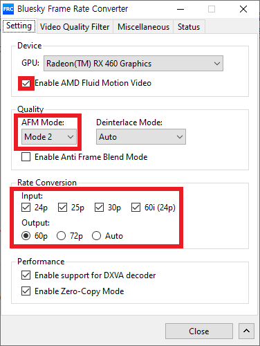 팟플레이어와 Bluesky Frame Rate Converter