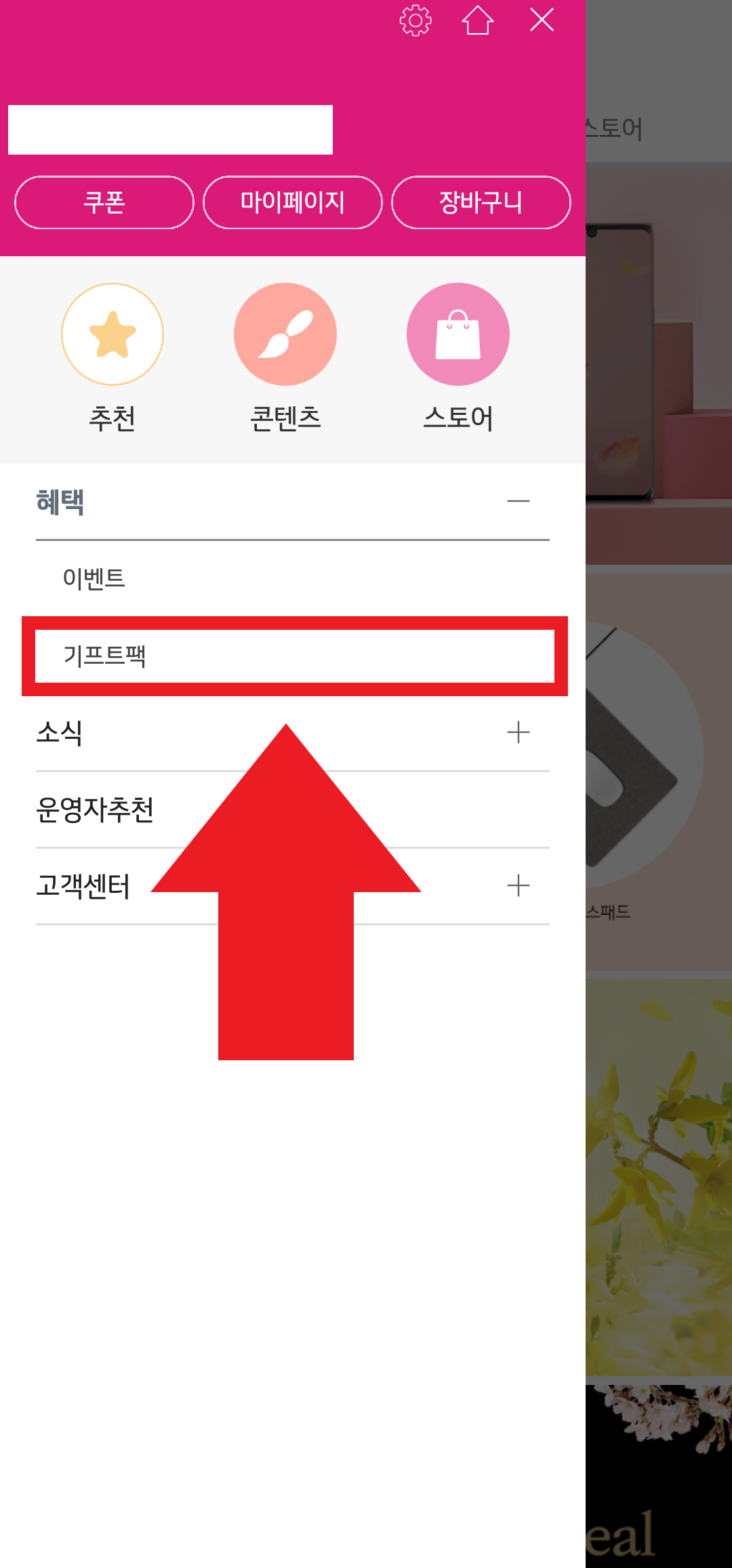 기본적으로 설치되어 있는 앱 중에서 [스마트월드]에 들어가신 다음에 [기프트팩]을 선택하시면 됩니다.
