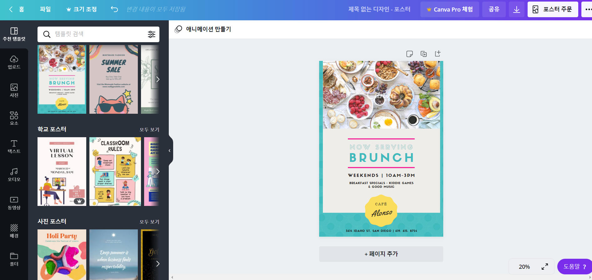 이런 식으로 기본 제공된 틀을 선택하고 여기에서 사진과 글자를 바꾸는 식으로 간단하게 멋진 결과물을 만들어 낼 수 있는 거죠. 마치 애플의 Pages하고 비슷한 느낌이라고 이해하시면 쉽지 않을까 싶습니다.