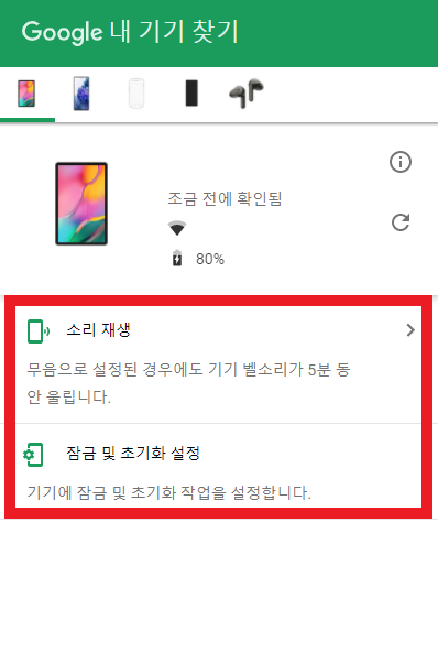개인정보를 보호하기 위해 지도는 가렸습니다만, 실제로는 지도 상에 위치도 표시되며, 소리 울리기는 물론 잠그기, 위치추적, 백업, 잠금 해제 등등 여러가지를 사용할 수 있습니다. 이 기능을 통해서 설사 기기를 되찾지 못하더라도 데이터 삭제 기능을 활용해서 개인정보 유출은 막을 수 있습니다. 평소에 미리미리 확인해 두면 매우 요긴하겠죠?