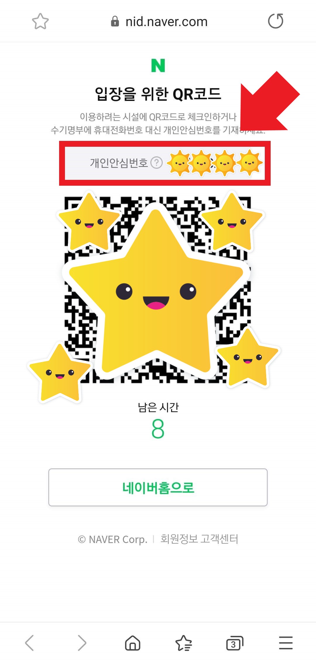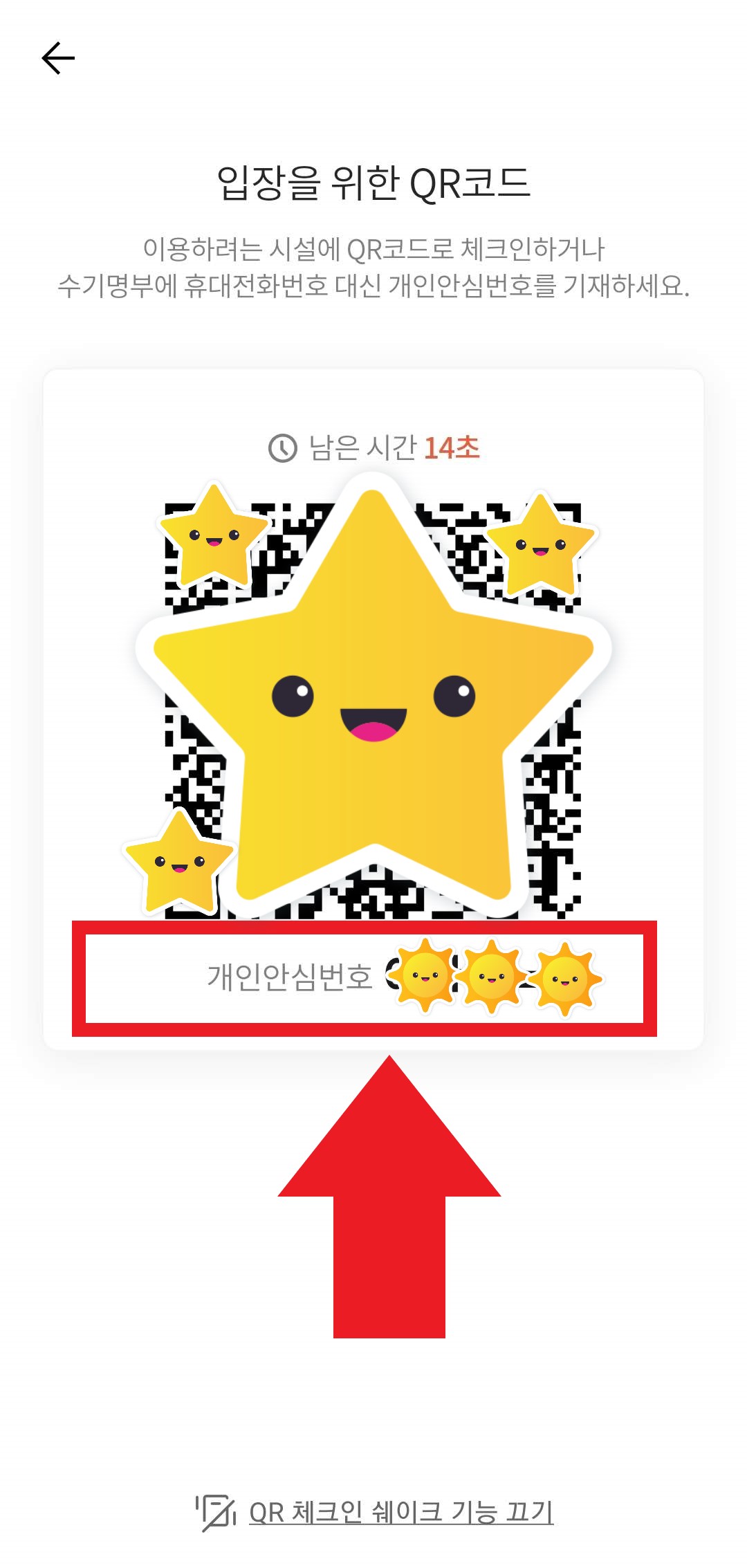 QR 코드 체크인 화면을 띄우면 저렇게 '개인 안심 번호'가 나옵니다! 마치 차량 번호판처럼 글자와 숫자의 조합으로 나오는데, 이걸 명부에 기재하면, 방문한 가게나 소비자 입장에서 개인정보 유출을 걱정할 필요가 없죠. 그러나 문제가 있을 때 방역 당국에서는 추적할 수 있습니다.