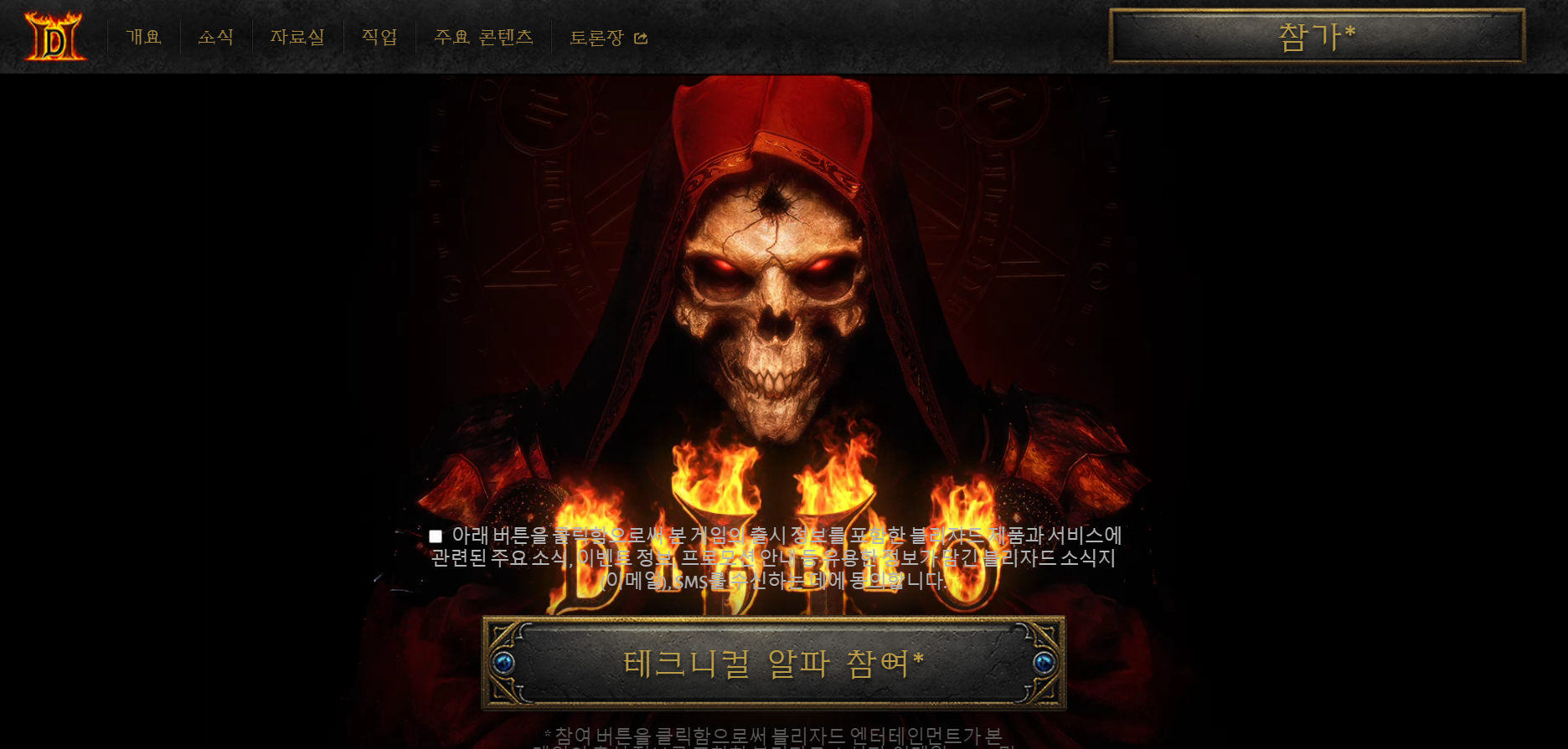 위의 링크를 클릭하시면 나이를 인증한 다음 알파 테스트를 신청할 수 있습니다. 참고로 디아블로 시리즈는 청소년 이용 불가 게임이므로 인증 절차를 거쳐야합니다.