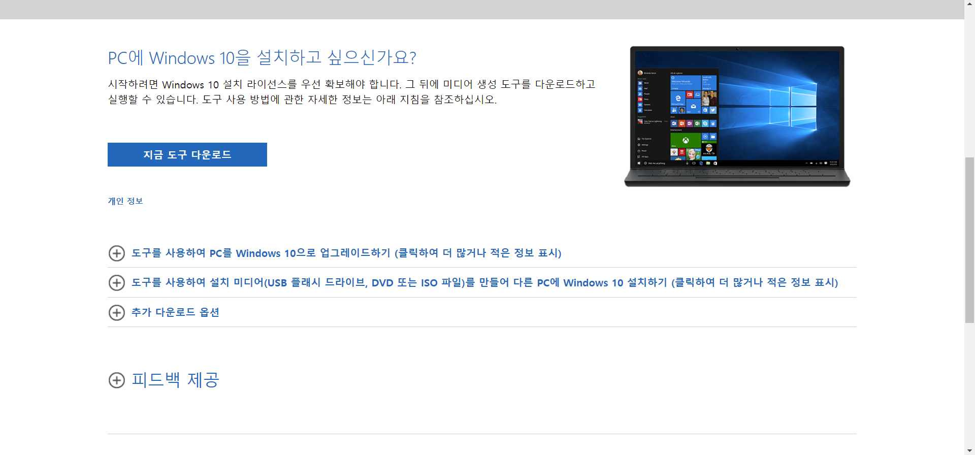 위의 마이크로소프트 공식 홈페이지를 방문해 보세요. 그리고 아래쪽으로 내려 보면 이런 화면을 보실 수 있습니다.