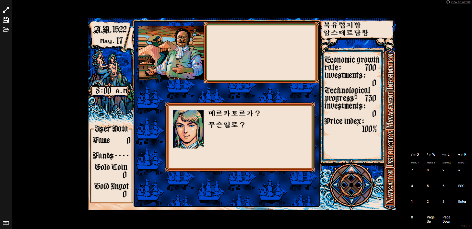 그리고 오늘, 이 대항해시대 2의 무설치 웹버전을 발견하여 소개해 드리려고 가져왔습니다. 물론 한글판입니다 ㅎㅎ 준비물은 엣지 혹은 크롬, 파이어폭스와 같은 브라우저만 있으면 됩니다. 모바일에서도 할 수 있어요! 인터넷 익스플로러는 안 됩니다 (당연히)