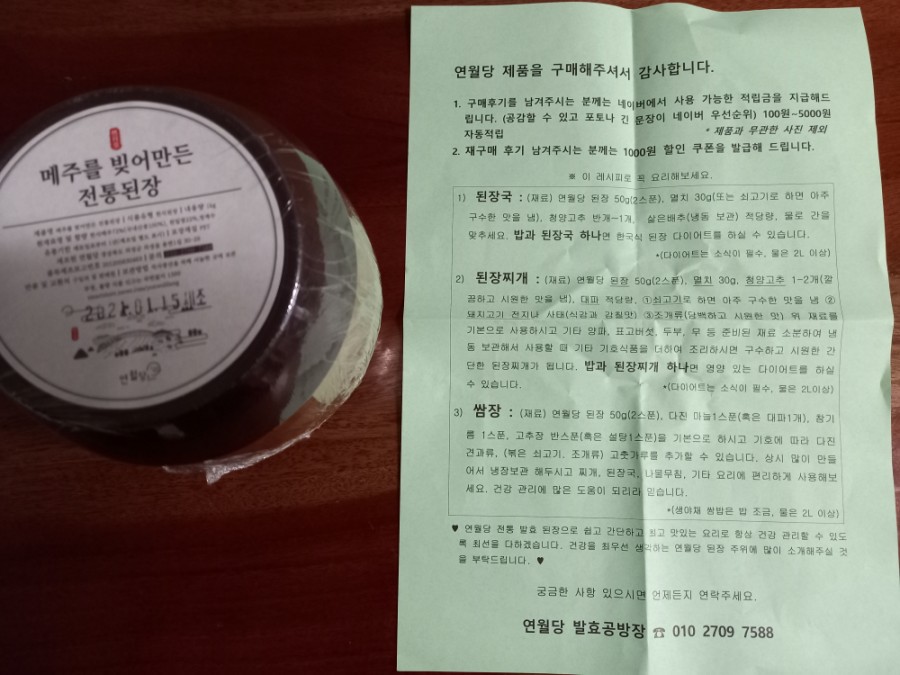 참고로 이 업체에서 만든 또다른 제품으로는 '장단콩 직접 빚은 전통된장'도 있습니다. 다른 제품은 과연 믿을 수 있는 건지 의문입니다.