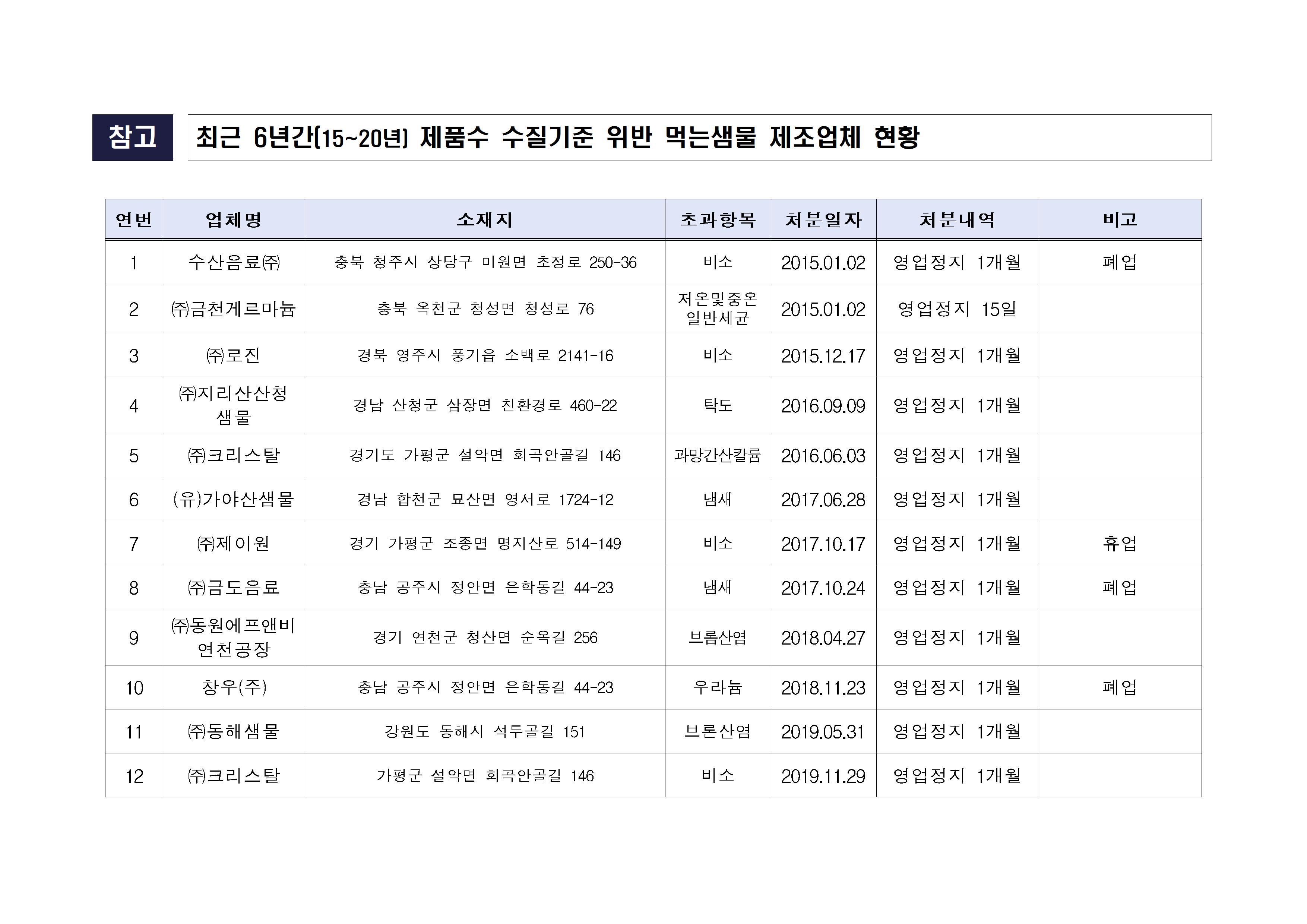 참고로 롯데 아이시스 기준으로 납품업체가 씨에이치음료, 산청음료, 백학음료인 경우에는 문제가 없었다고 합니다. (이건 제품 라벨을 보면 확인 가능합니다) 다만 '청도샘물', '크리스탈' 혹은 '씨엠'은 최근 6년 사이 3번이나 수질 부적합을 받았었다고 하네요.