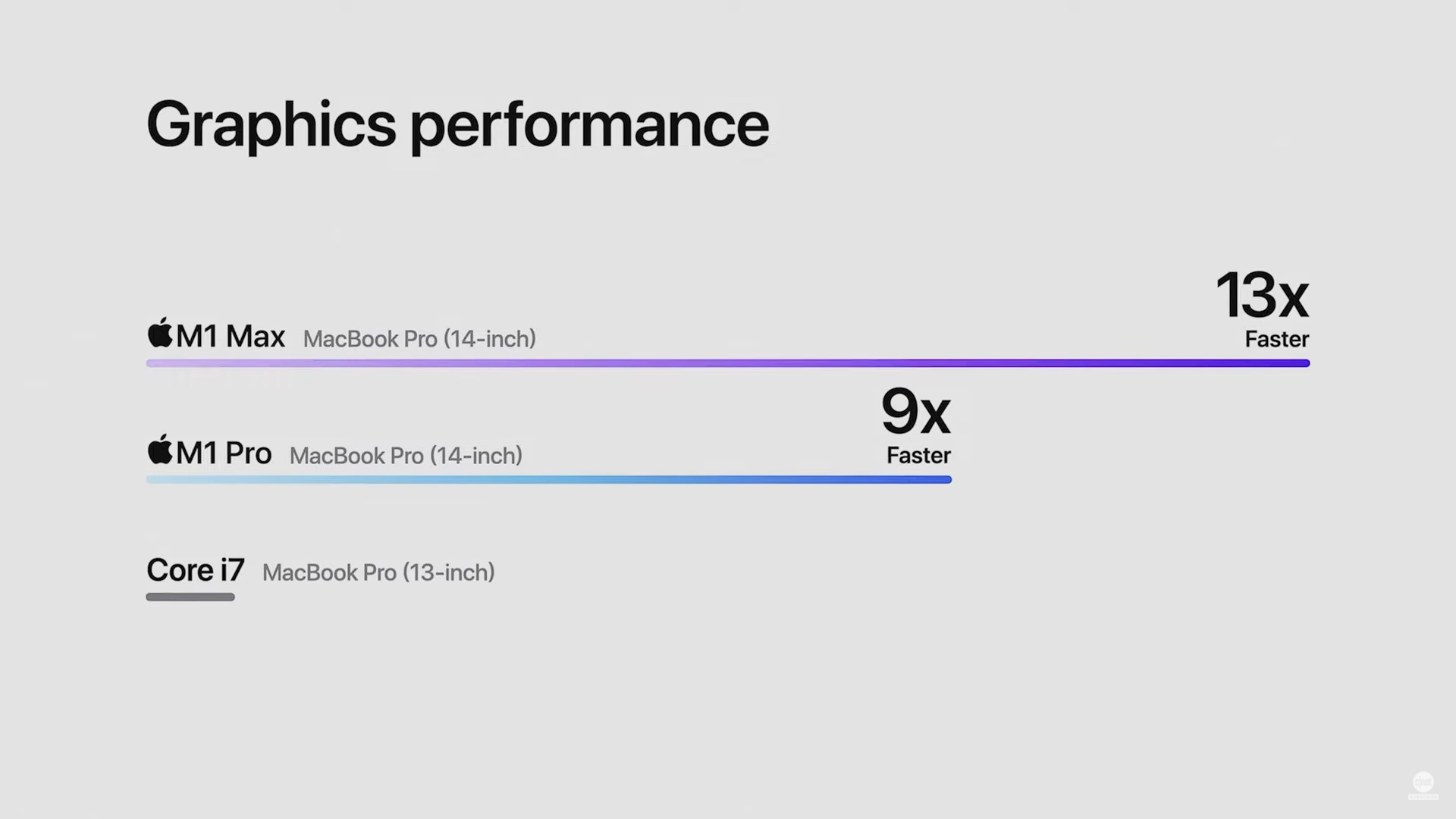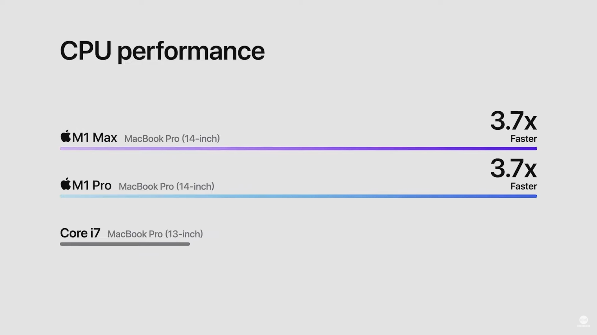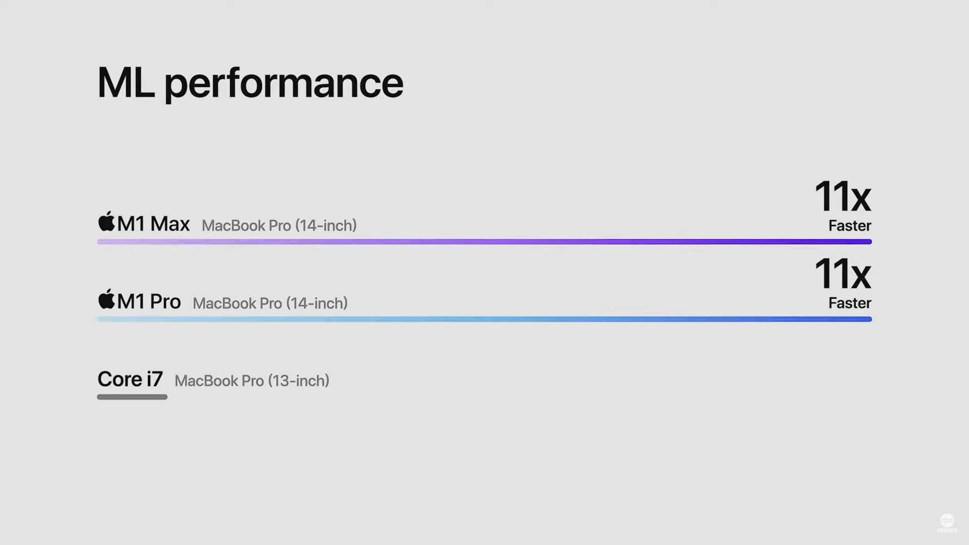 14인치 모델 기준, 애플의 발표에 따르면, 기존 13인치 인텔 코어 i7 제품군과 비교했을 때 CPU 성능은 3.7배, 인텔 8세대 아이리스 플러스 내장 그래픽 대비 그래픽 성능은 최대 13배, 그리고 머신러닝 성능은 11배까지 높다고 합니다.