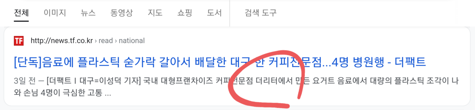참고로 현재 해당 기사는 수정되어 'T사'라고만 나오고 있으나, 구글에 남았던 이전 기록에는 업체명이 그대로 나오고 있는 상황입니다. 구글 검색 결과는 실시간 반영이 아니라서 수정을 하더라도 반영되기까지 며칠의 시간이 소요될 수 있는데, 그러다보니 검색을 해보면 저 업체명이 그대로 검색 결과로 나오고 있는 상황입니다.