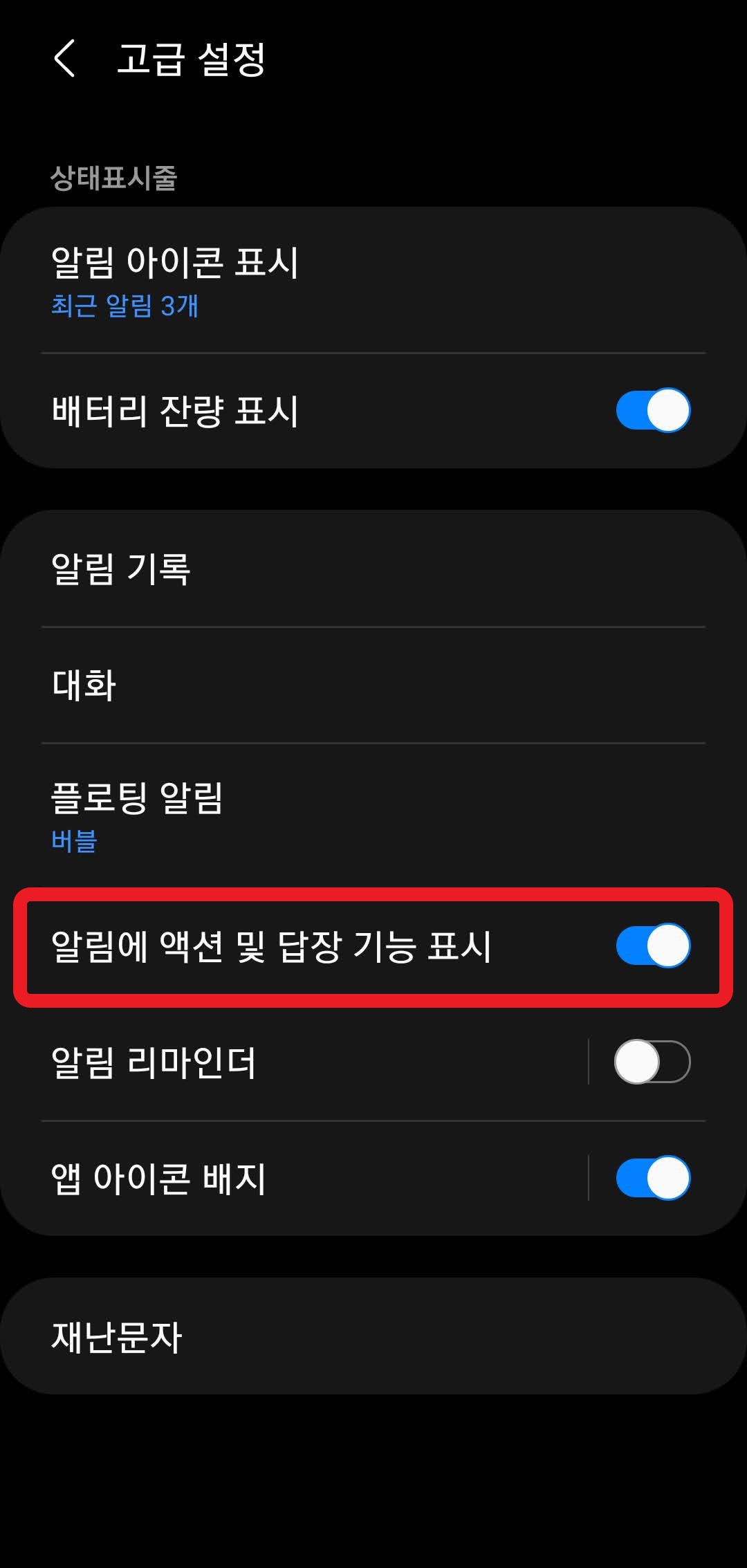 어느 순간부터 카톡이나 문자가 왔을 때 알림창에 "예", "헉", "감사합니다" 뭐 이런 추천 문구가 뜨기 시작하죠? 물론 이 기능이 유용할 수도 있지만, 그렇지 않은 경우도 있고, 알림창 자체가 커지는 문제와, 예고 없이 들어간 신기능에 당황해하는 사용자들이 많다는 문제가 있습니다.