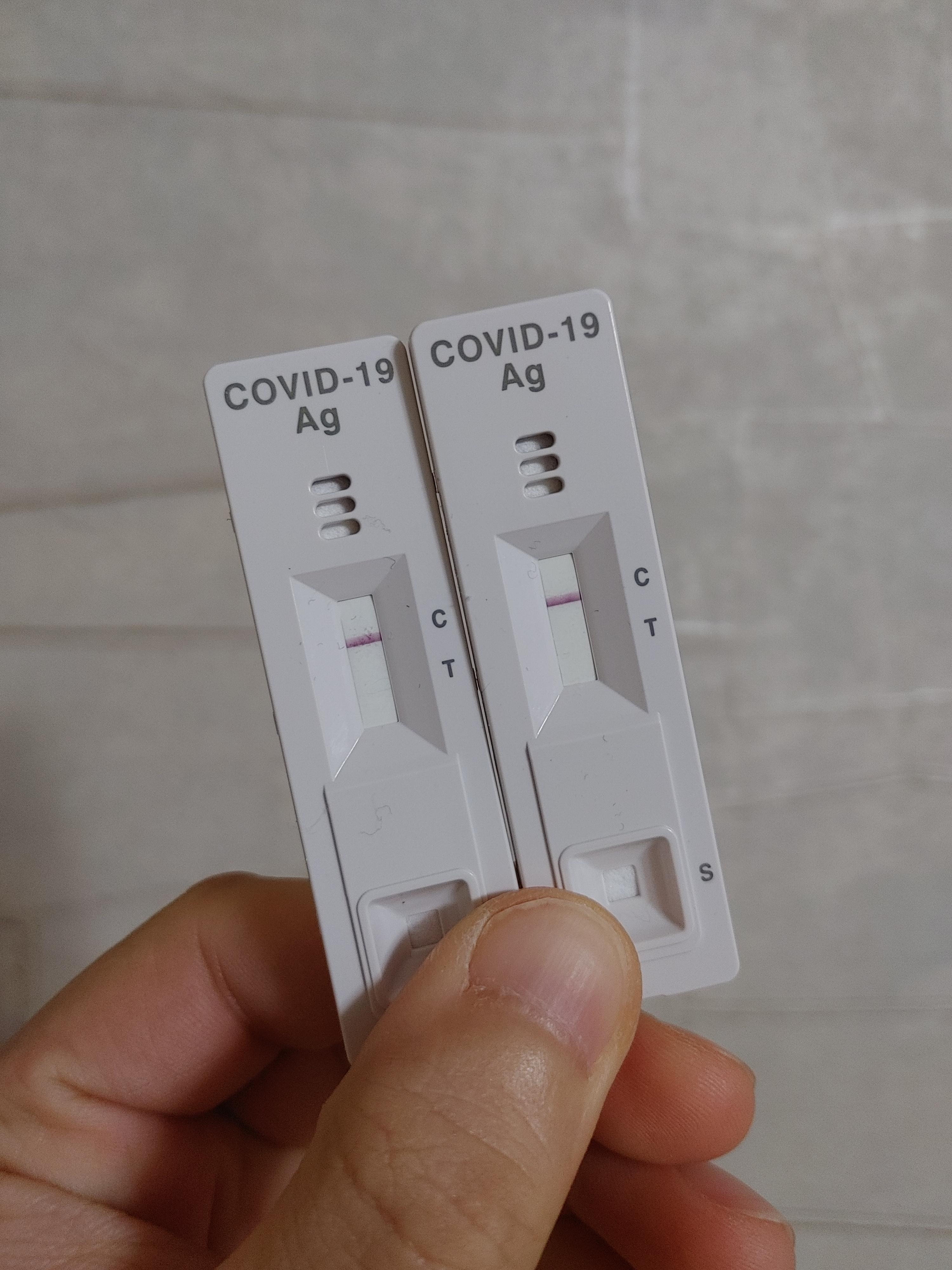 - 오늘 아침 자가진단키트로 다시 검사를 해봤습니다. 그리고 결과는 이렇습니다.