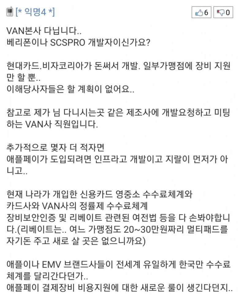 그리고 무엇보다 애플페이가 진짜로 시작된다고 하는 저 주장 자체를 검증할 방법이 없다는 게 가장 큰 문제입니다. 실제로 다음과 같은 댓글도 있었습니다.