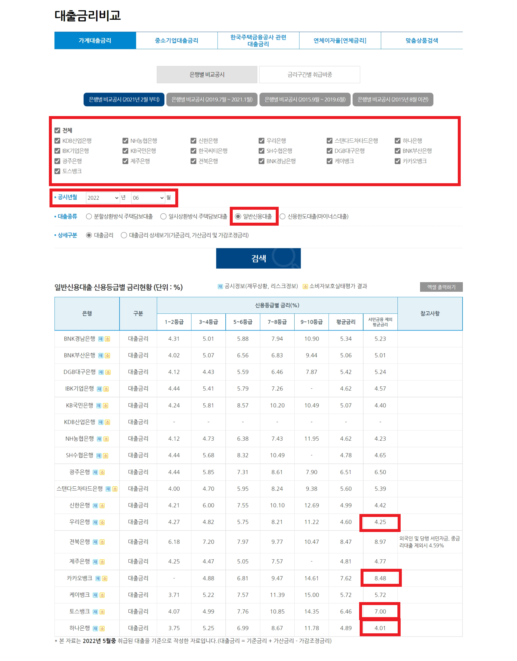 일반신용대출 (2022.07.14 기준)