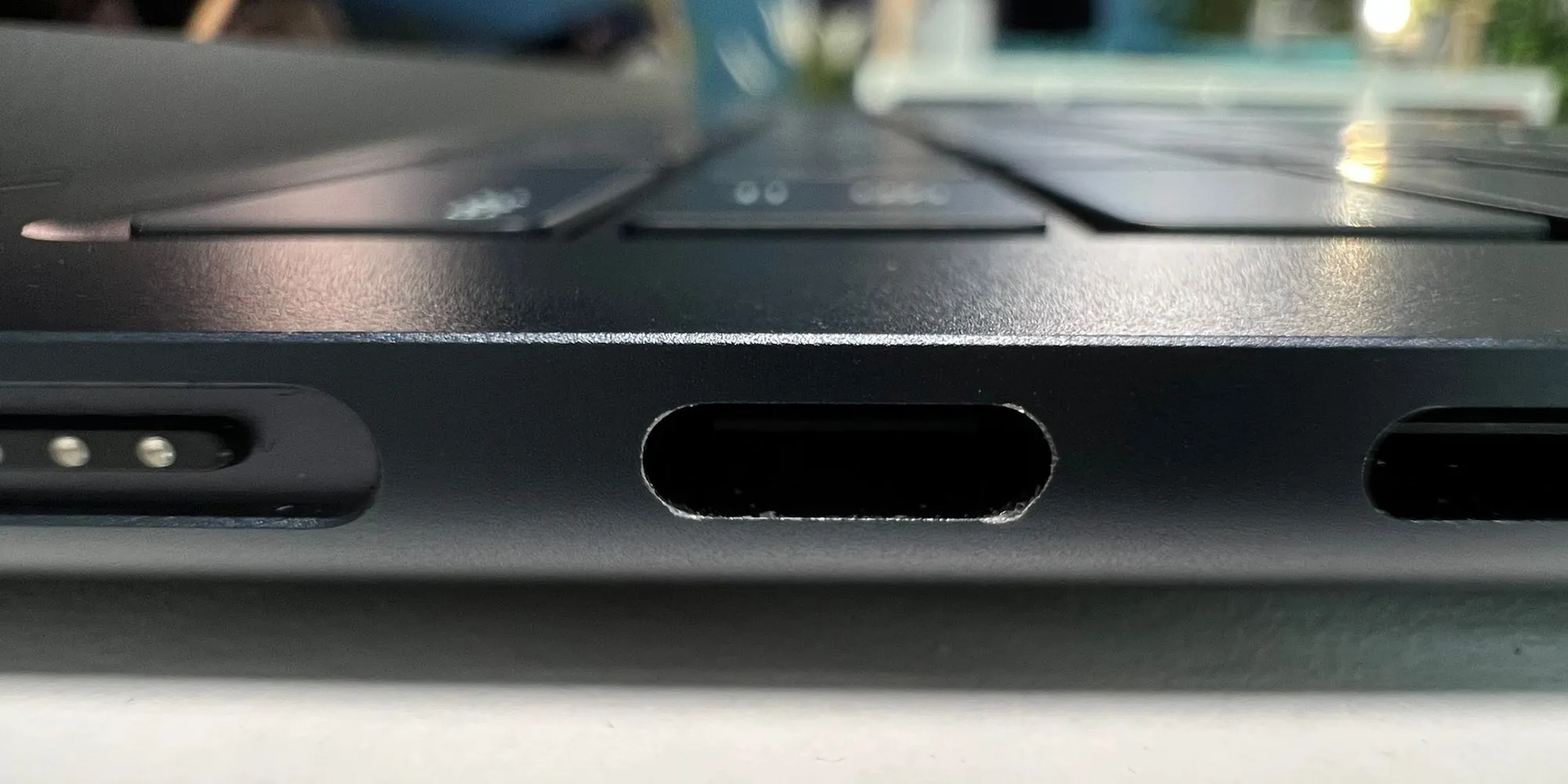 포트 주변으로 은색이 드러나는 걸 볼 수 있죠? USB-C 케이블 등을 꼽고 빼는 과정에서 미세하게 벗겨짐이 발생하는 것으로 보입니다. 더 심한 사례들도 있습니다.