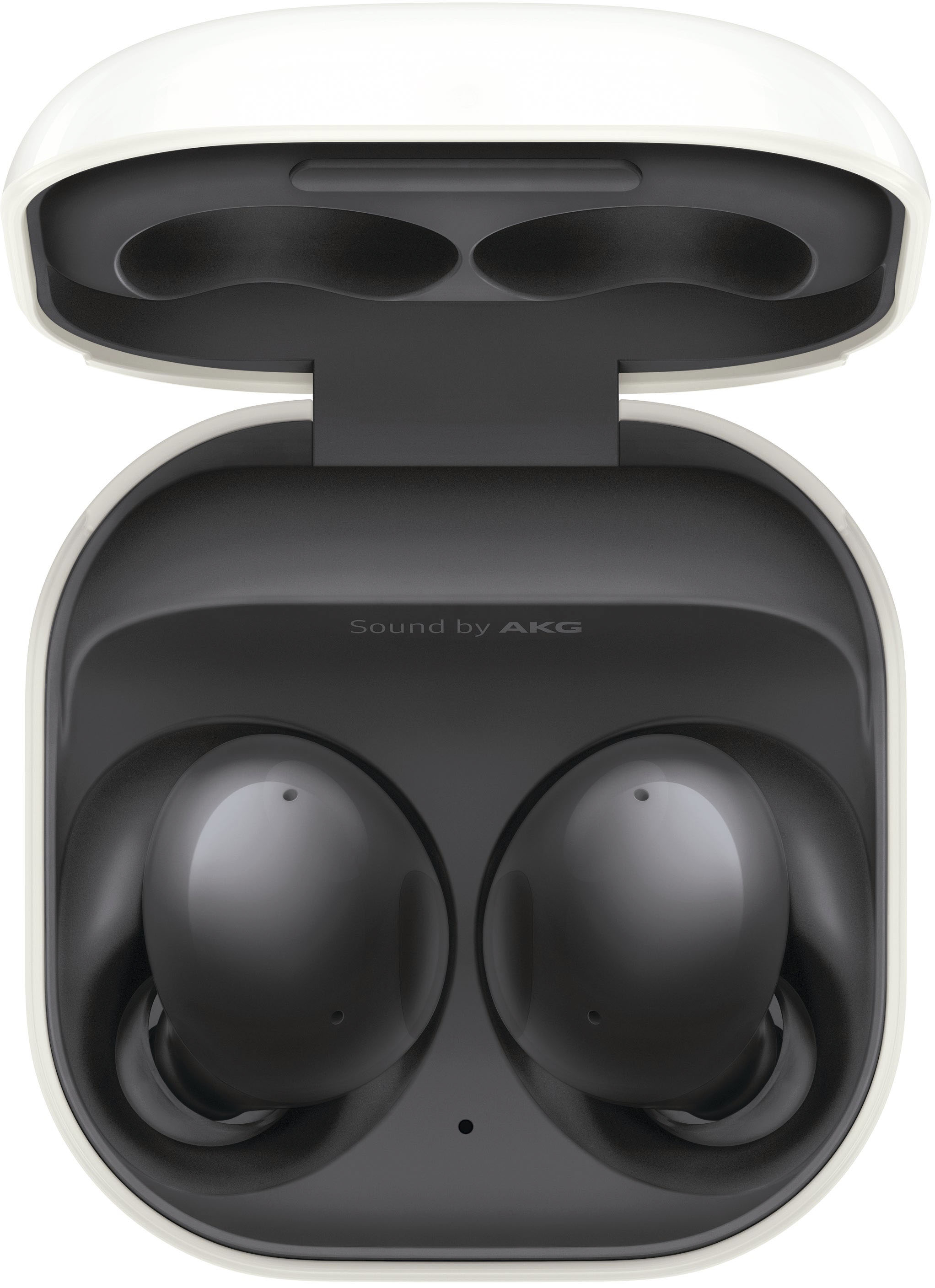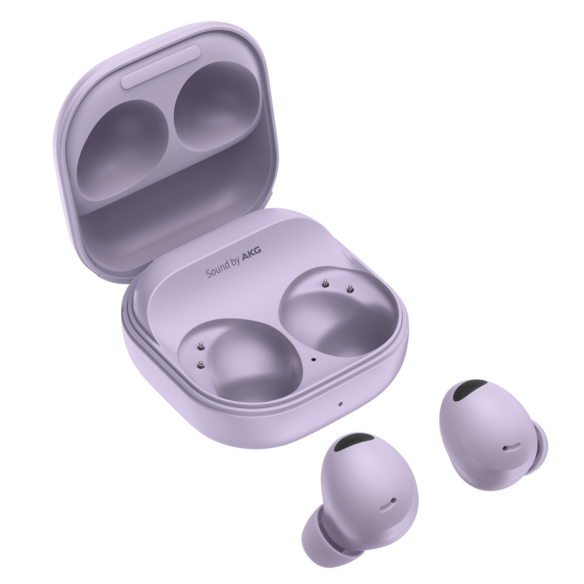 이번 버즈2 프로 역시 기존 버즈 시리즈와 동일한 사이즈의 크래들을 공유합니다. 그래서 기존에 사용하던 케이스를 그대로 사용할 수 있다는 장점이 있고, 전체적인 유닛의 디자인이 버즈2의 느낌과 비슷해졌습니다. 내부에는 Sound by AKG 라는 문구가 들어가 있네요.