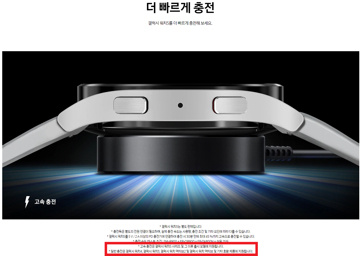 그래서 이번 워치5부터는 10W 고속 충전을 지원하는데요, 이에 맞춰 나온 고속 충전 독 역시 워치5에서만 10W 고속충전이 이루어지고, 기존 제품에 사용하면 이전처럼 5W 일반 충전이 이루어진다고 하네요 😥