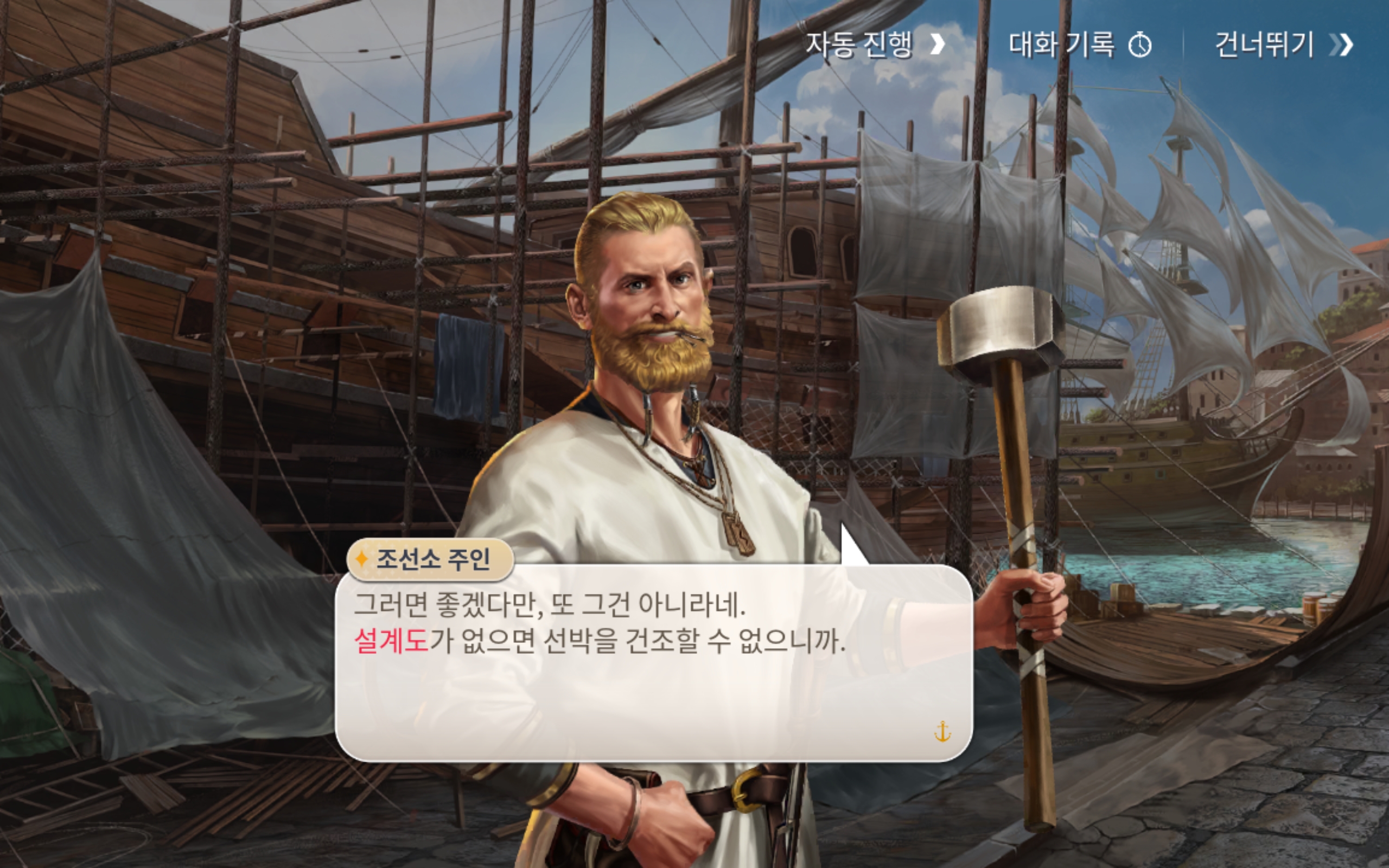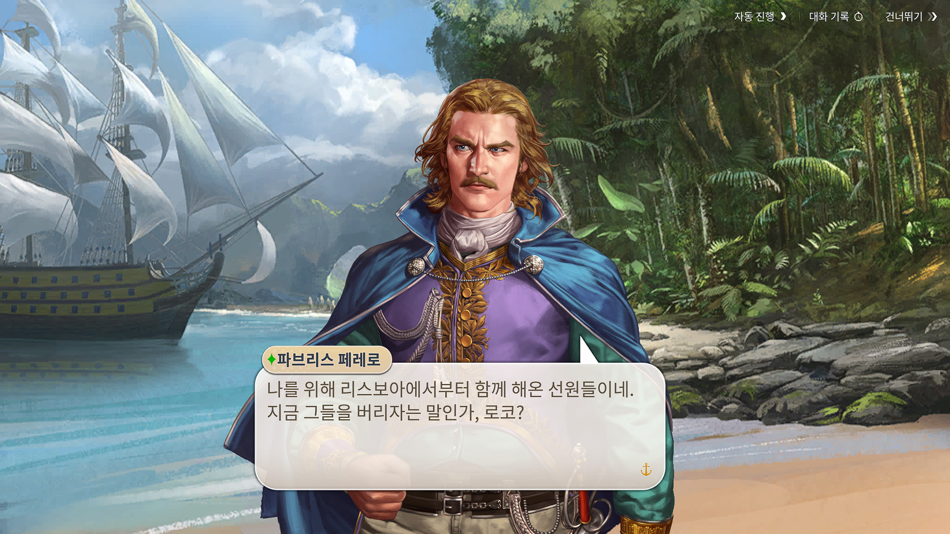 그 외에도 마치 싱글플레이 게임을 즐기는 것처럼, 기존 대항해시대 캐릭터들의 과거 이야기 회상과 그 과정에서 배우는 게임 플레이 방법 등도 꽤 매력적이었고, 전체는 아니지만 부분적으로 음성 더빙도 되어 있어서 즐기는데는 충분히 좋았습니다.