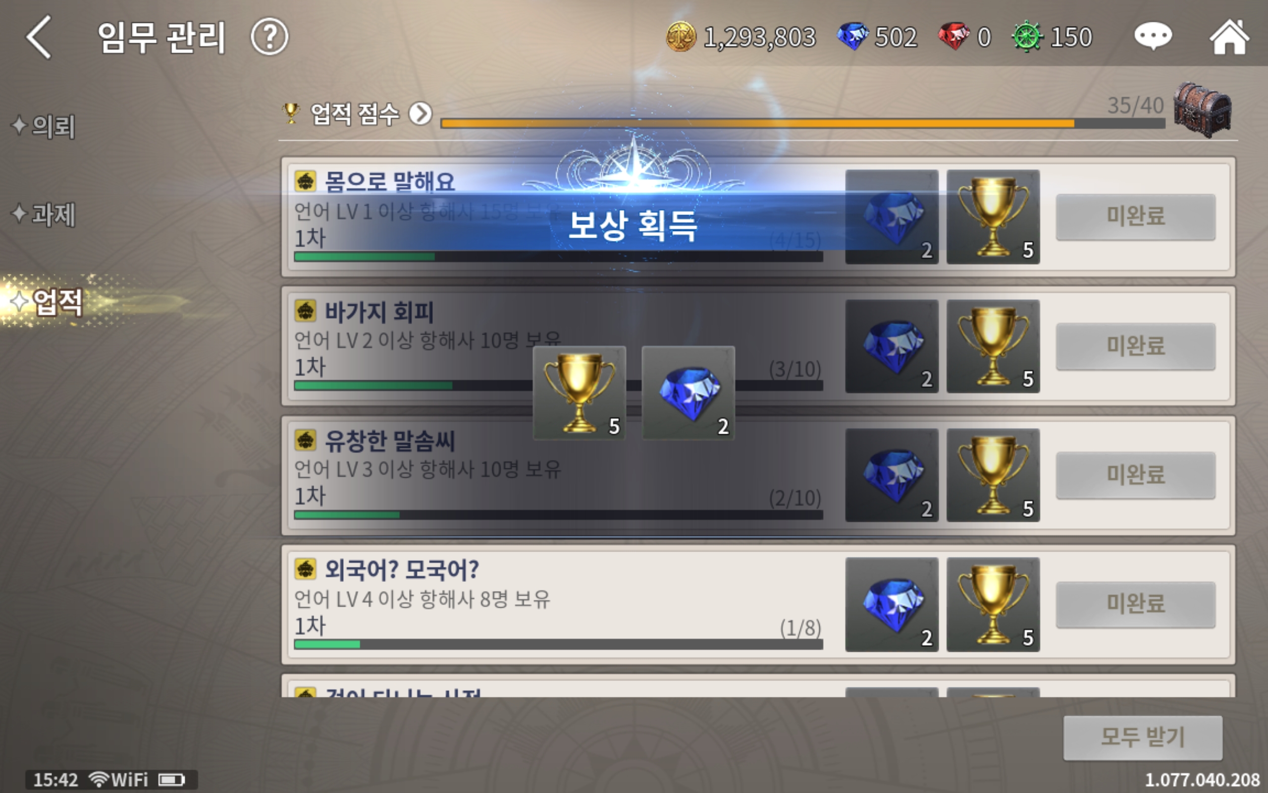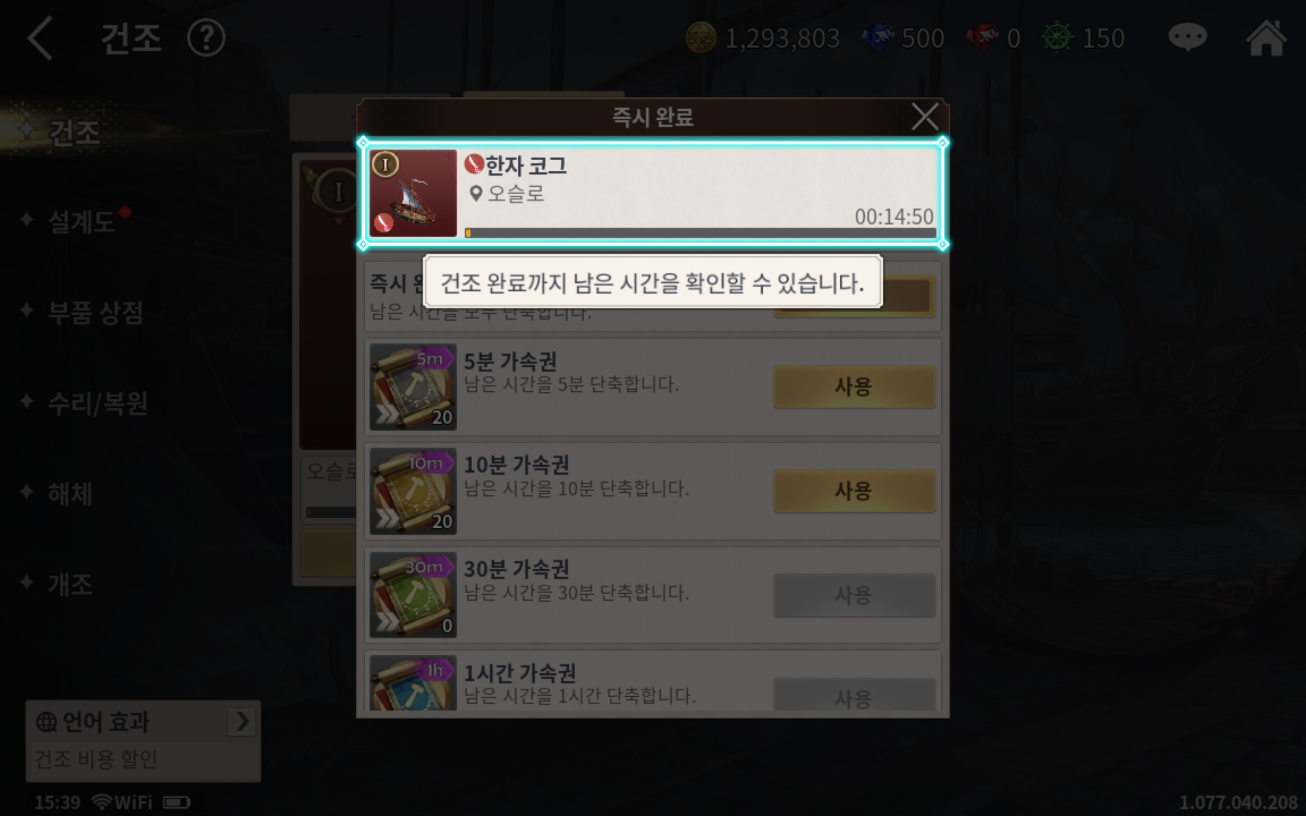 분명 캐릭터나 선박, 지리적 요소 등은 기존 대항해시대 시리즈와 연관이 있으나 전반적인 플레이 방식이나 퀘스트를 부여 받는 구조, 플레이 방식 등에서는 완전히 모바일 게임의 모습을 그대로 가지고 있습니다. 그래서 특정 퀘스트를 일정 시간 내에 완수해서 보상을 받는다든가, 일일 보상을 받는다든가, 배를 더 빠르게 건조하고자 할 때는 특수 아이템을 쓴다든가 하는 식이 가능합니다.