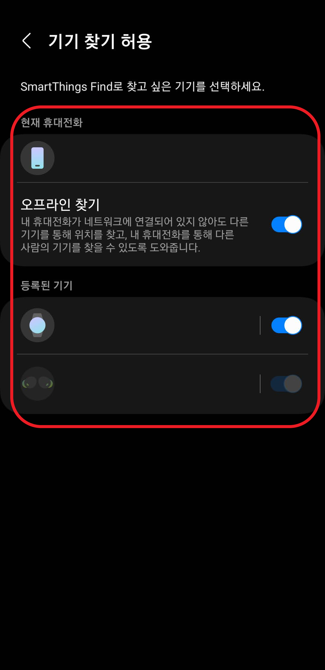 여기에서 '기기 찾기 허용'을 누르고, 오프라인 찾기를 활성화 해주세요. 참고로 저는 핸드폰도 오프라인 찾기를 켜놨습니다. 이렇게 하면, 내 핸드폰이 네트워크에 연결되어 있지 않더라도 위치를 찾을 수 있습니다!