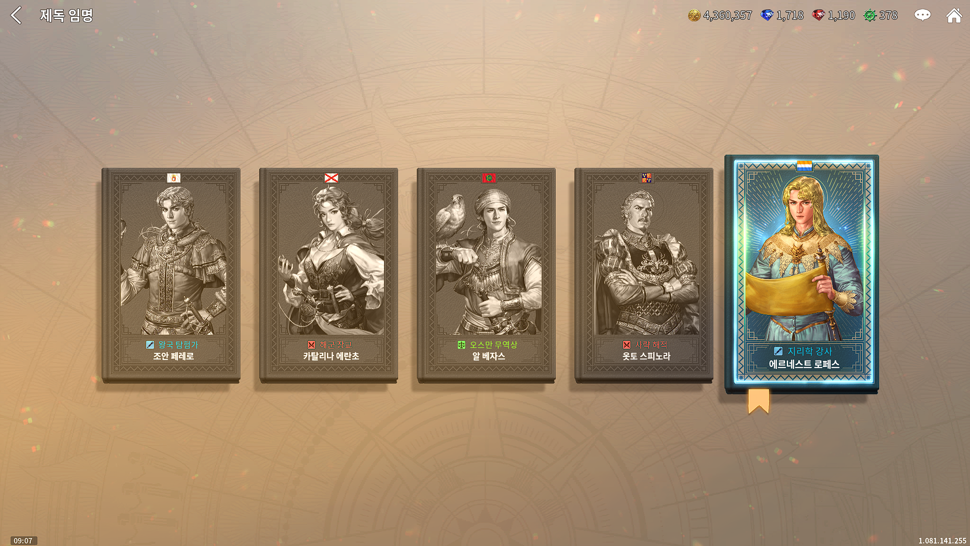 조안 페레로는 S급 동료 항해사 2명을 깔고 갑니다. 카탈리나는 스토리 진행상 전투가 많아서 레벨업이 쉽습니다. 알 베자스는 오스만 지역 특성상 무역으로 돈을 쓸어 담기에 매우 유리합니다. 옷토 스피노라는 전체적인 진행 자체가 짧고 끝나면 끝판왕 배 갤리온을 얻습니다. 에르네스트 로페즈는 이도저도 안 되고 원래 목표인 '모험'으로는 돈을 모을 수도 없으며 그렇다고 지역이 무역에 유리한 것도 아닙니다.