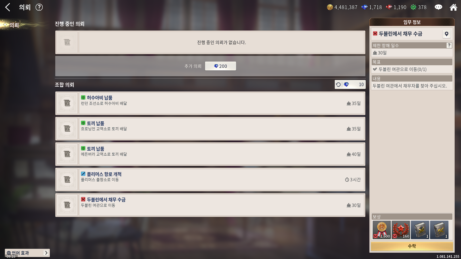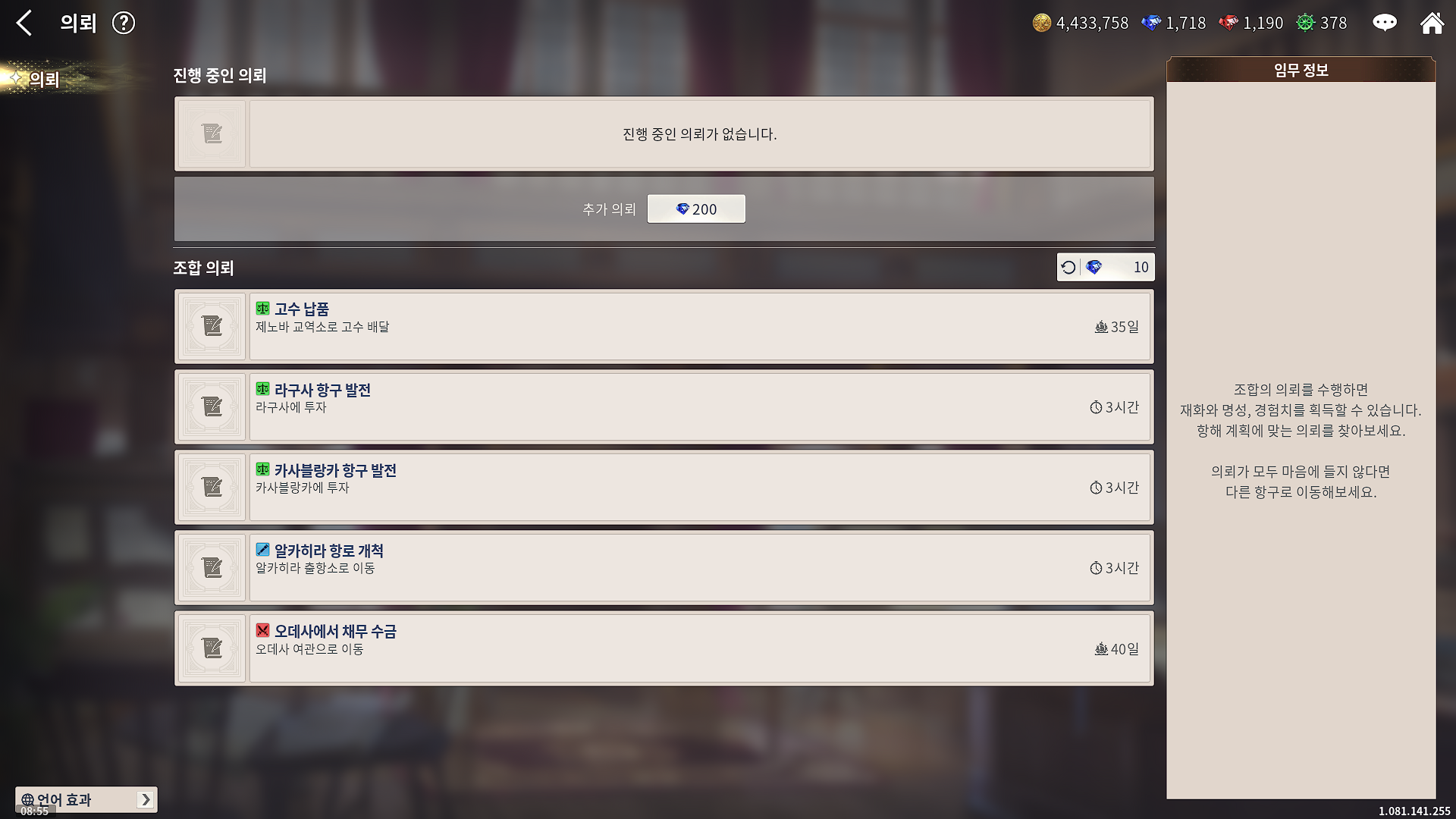 특정 교역소에 특정 상품 배달, 특정 항구에 투자, 어디 출항소 가서 편지 전달, 어디 여관 가서 채무 수금.....
