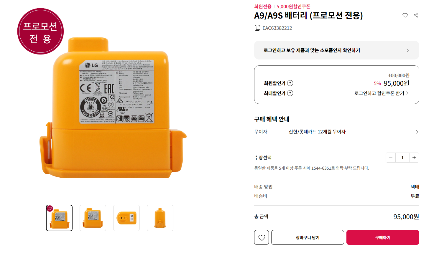 엘지전자 코드제로 A9, A9s 배터리 할인 행사주저리 주저리 2022. 10. 5. 11:59