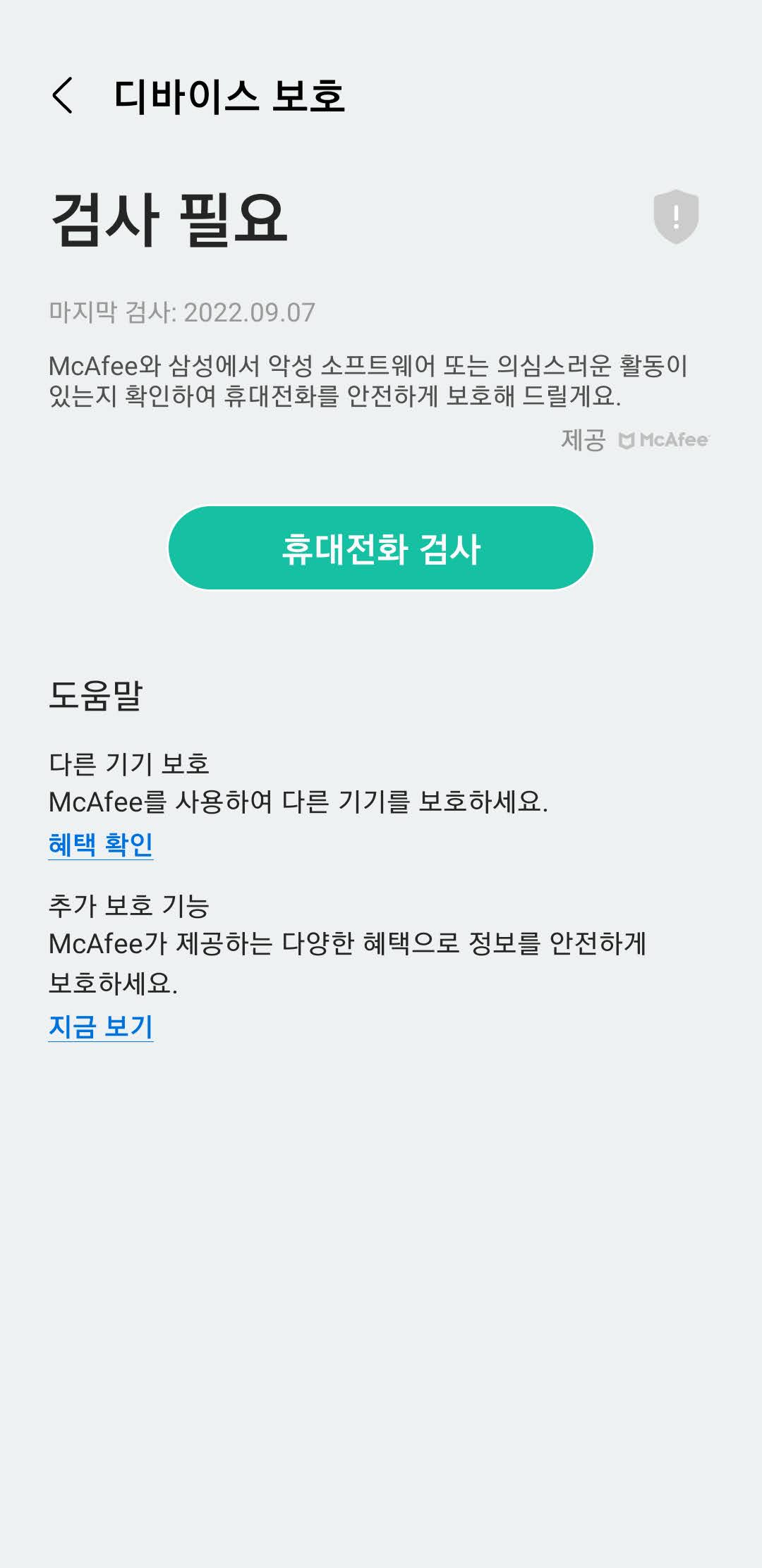 삼성의 갤럭시 사용자들은 이미 핸드폰 자체의 보안 기능 중 하나로 McAfee와 협업을 통해 구현한 '디바이스 보호' 기능을 사용할 수 있습니다.