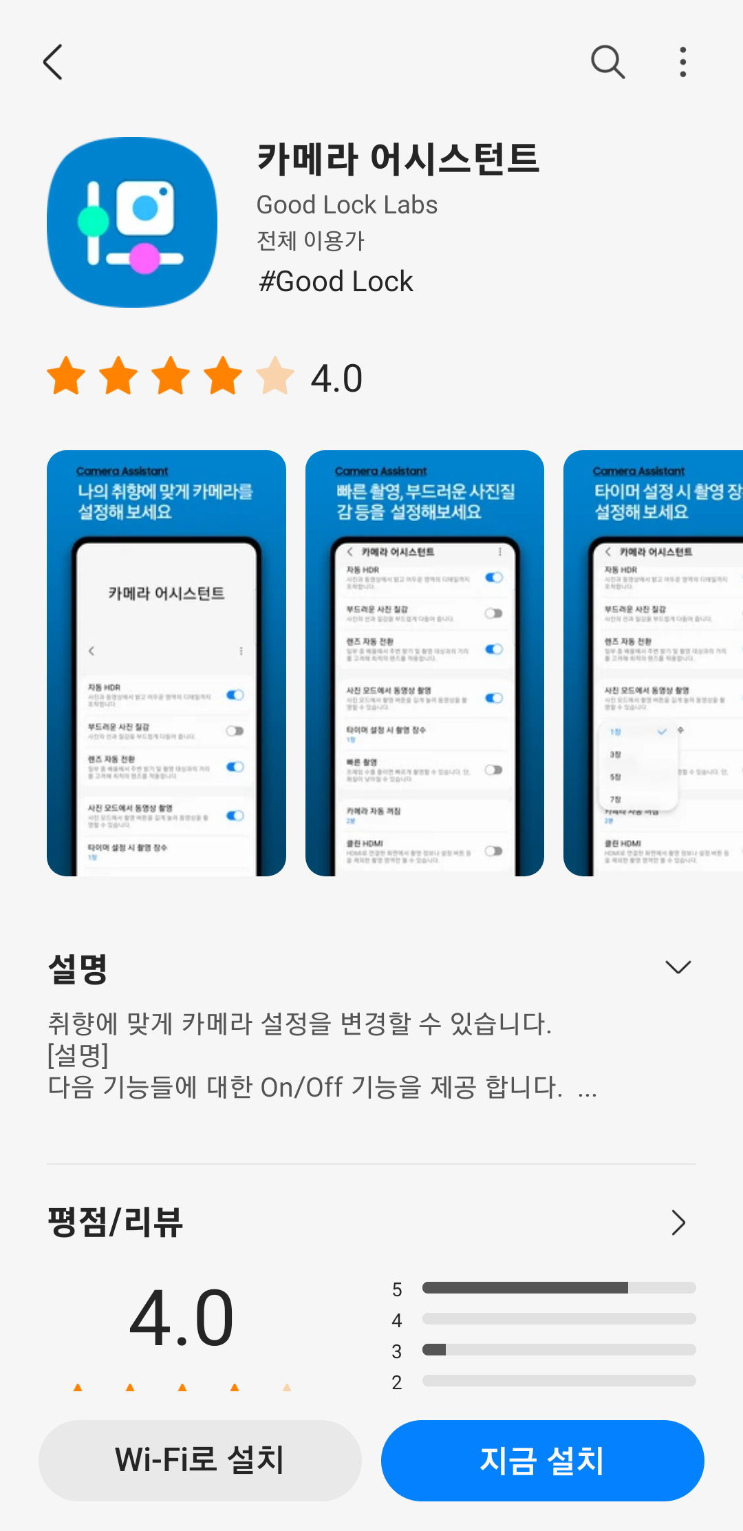 S22 시리즈 + OneUI 5 사용자 분들은 갤럭시 스토어 혹은 굿락 자체에서 Camera Assistant를 검색해 보세요. 이걸 설치하면 카메라 앱 내에서 설정으로 들어가면 카메라 어시스턴트가 보이게 됩니다.