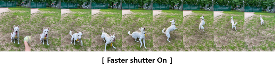 갤럭시 제품군에서 가장 아쉬움이 컸던 부분이 이 셔터 스피드였죠? 이제 빠른 촬영 기능을 이용하면 초고속으로 사진 촬영이 이루어집니다. 터치 한방에 초고속으로 연속 촬영이 이루어져서 매우 빠른 움직임을 보이는 동물들이나 아이들을 찍을 때 요긴하게 사용할 수 있게 되었습니다.