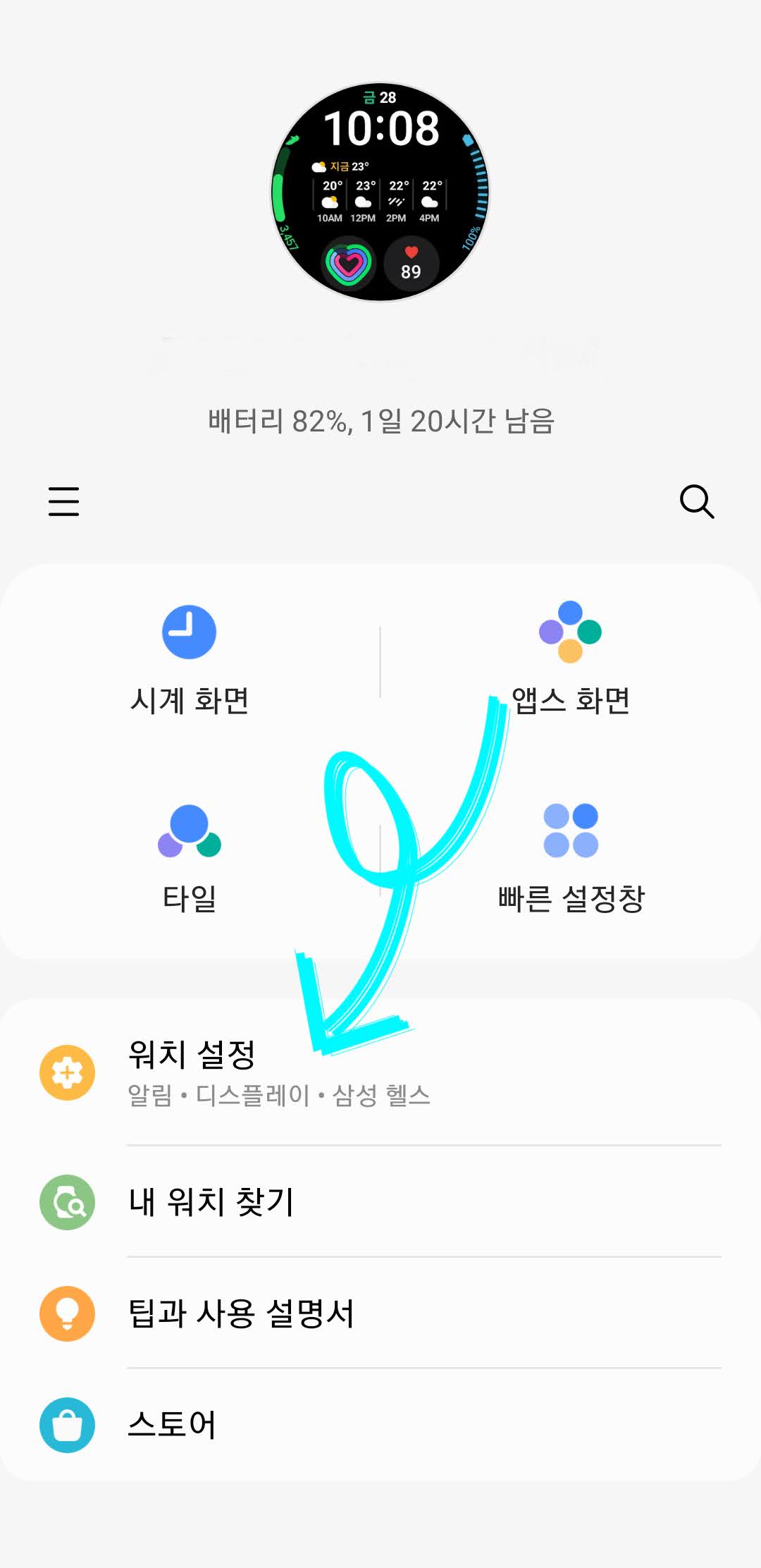 Galaxy Wearable 앱을 통해서 워치 버전을 확인합니다.