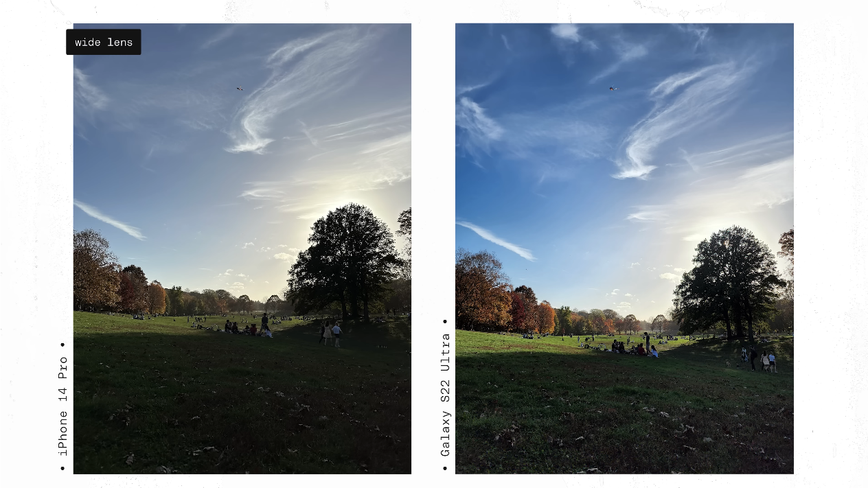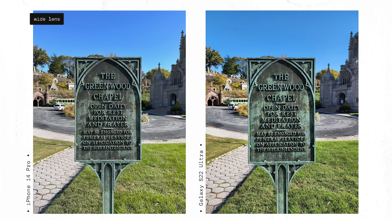 아이폰14 프로와 갤럭시S22 울트라 모두 각자 일관된 결과물을 보여준다는 점을 이야기 하였고 (픽셀은 그러하지 못 했죠)