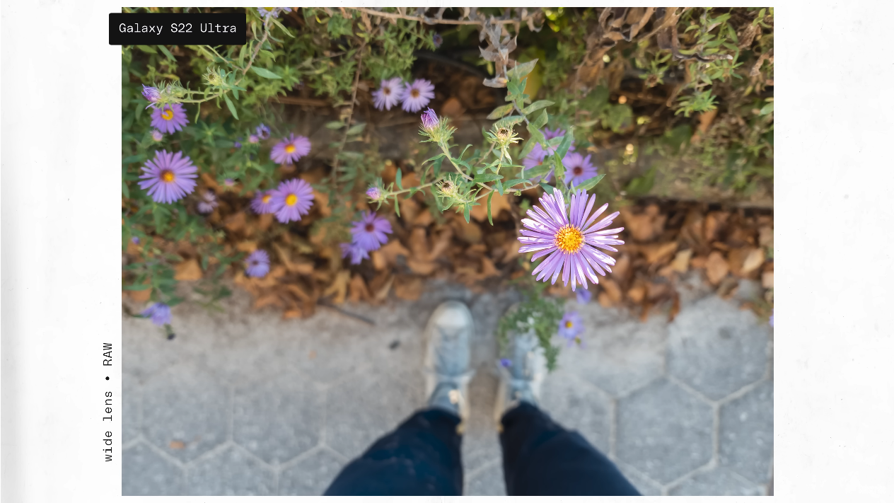 출처: the Verge https://youtu.be/iIBYa1ZEzFQ 갤럭시 S22 울트라는 1억 8백만 화소 렌즈, 그리고 역시나 픽셀 비닝을 이용하는데 굉장한 디테일을 얻을 수 있다고 하면서, 특히 프로 모드를 이용하면 셔터 스피드, ISO, 화이트 밸런스는 물론이고 초점 영역까지도 모두 다 기본 내장 카메라 앱을 통해서 원하는대로 설정할 수 있다는 점에서 높게 평가했습니다.