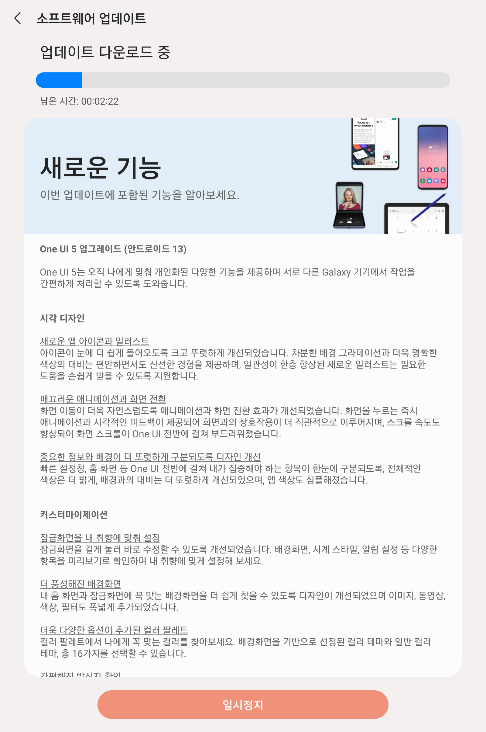 갤럭시탭 S7FE OneUI 5 / 안드로이드13 업그레이드 시작!IT 분야/모바일 2022. 12. 21. 15:39