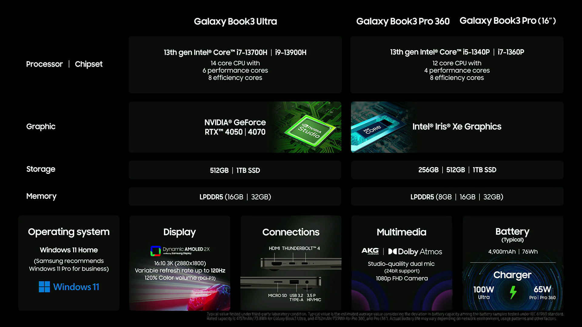 갤럭시북3 - 울트라, 프로, 기본형까지