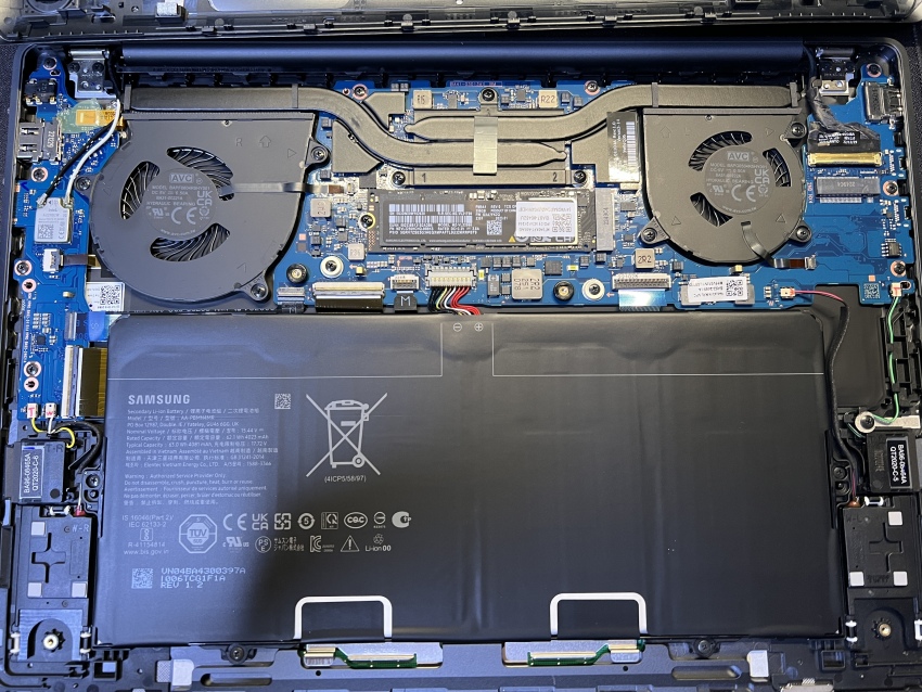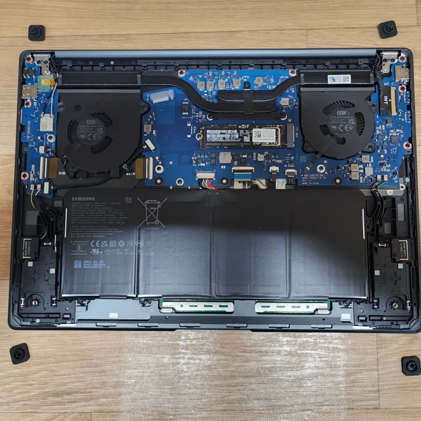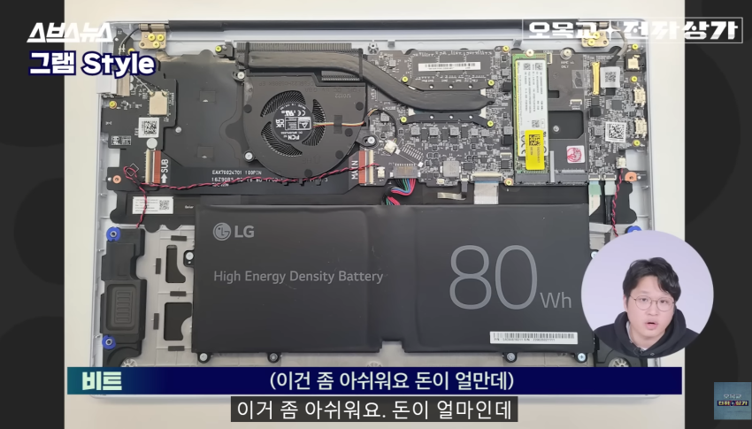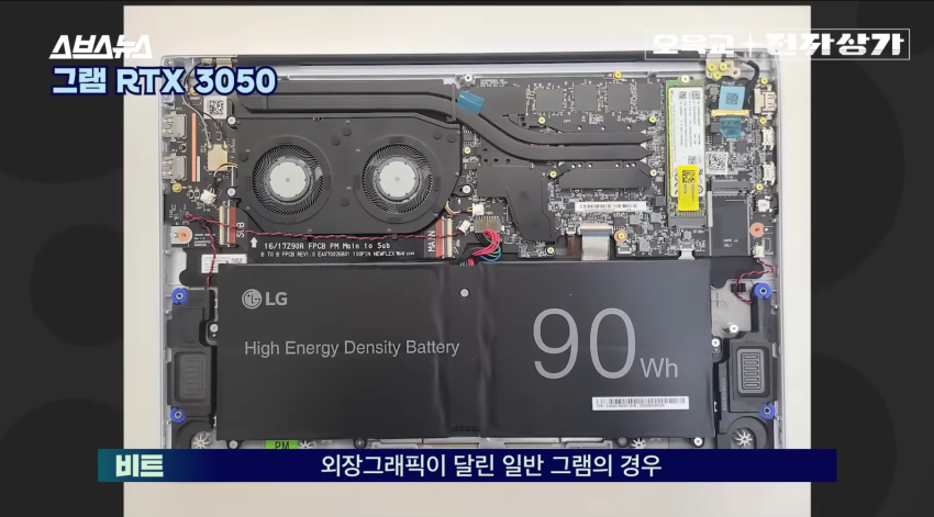 그램은 외장 그래픽이 달린 모델에만 팬2개와 쿨링 솔루션 추가를 해놨다는 겁니다 ㅎㅎ; 결국 그램은 가격은 훨씬 더 비싸면서 팬도 한 개에 불과한 제품이 되었습니다.