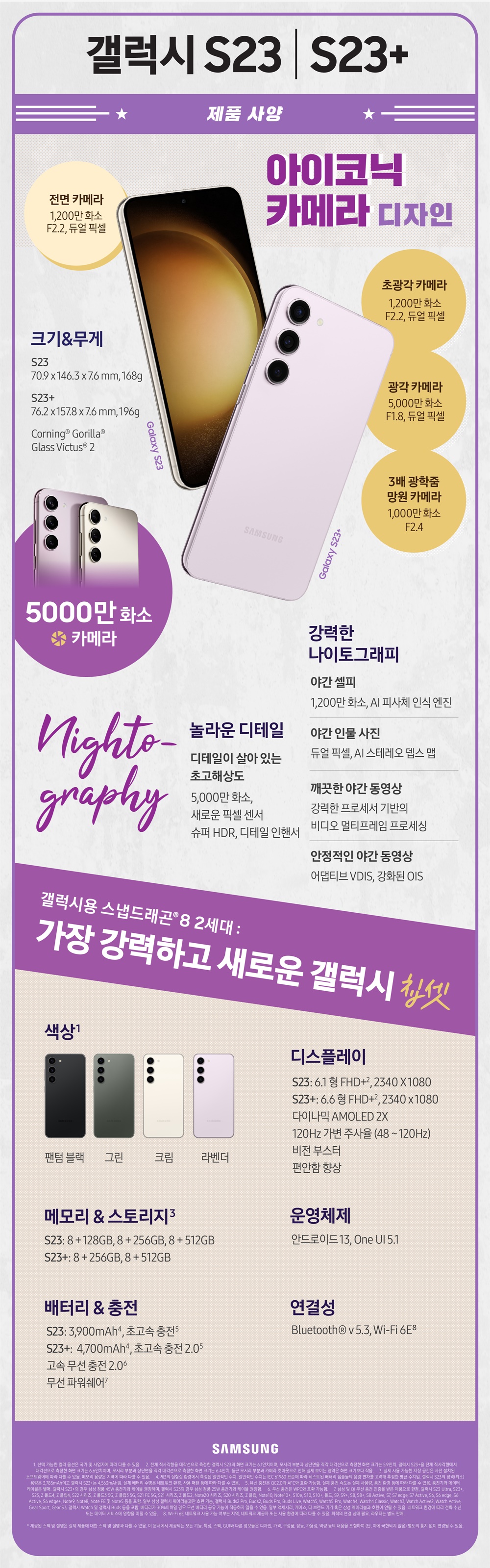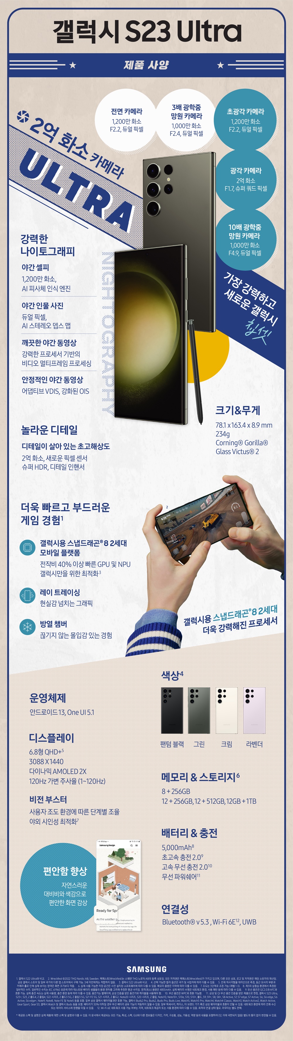 이번 갤럭시 S23 시리즈에 들어간 스냅드래곤 8 Gen 2 의 경우 깡성능 자체가 워낙 압도적으로 많이 향상되어 놀라울 정도입니다. 여기에 OneUI 5에서 갓적화를 이루어냈는데, S23에서는 한번 더 다듬은 OneUI 5.1이 기본으로 선탑재되어 나오니 기대를 해봐도 좋겠습니다.