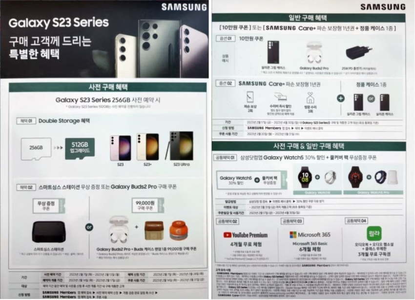 이제 출시를 며칠 앞두고 있는 삼성의 갤럭시 S23 시리즈에 대한 사전예약 혜택이 유출되었습니다. 이동통신사 대리점에서 흘러나온 것으로 보이는데, 어쨌거나 사실상 공식 정보나 다름 없으니 한번 같이 살펴보도록 하죠!