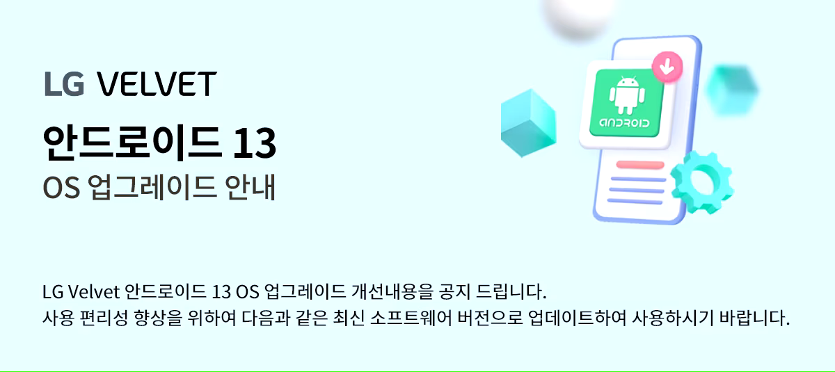엘지 벨벳 5G, 안드로이드13 업그레이드 시작IT 분야/모바일 2023. 2. 7. 13:17