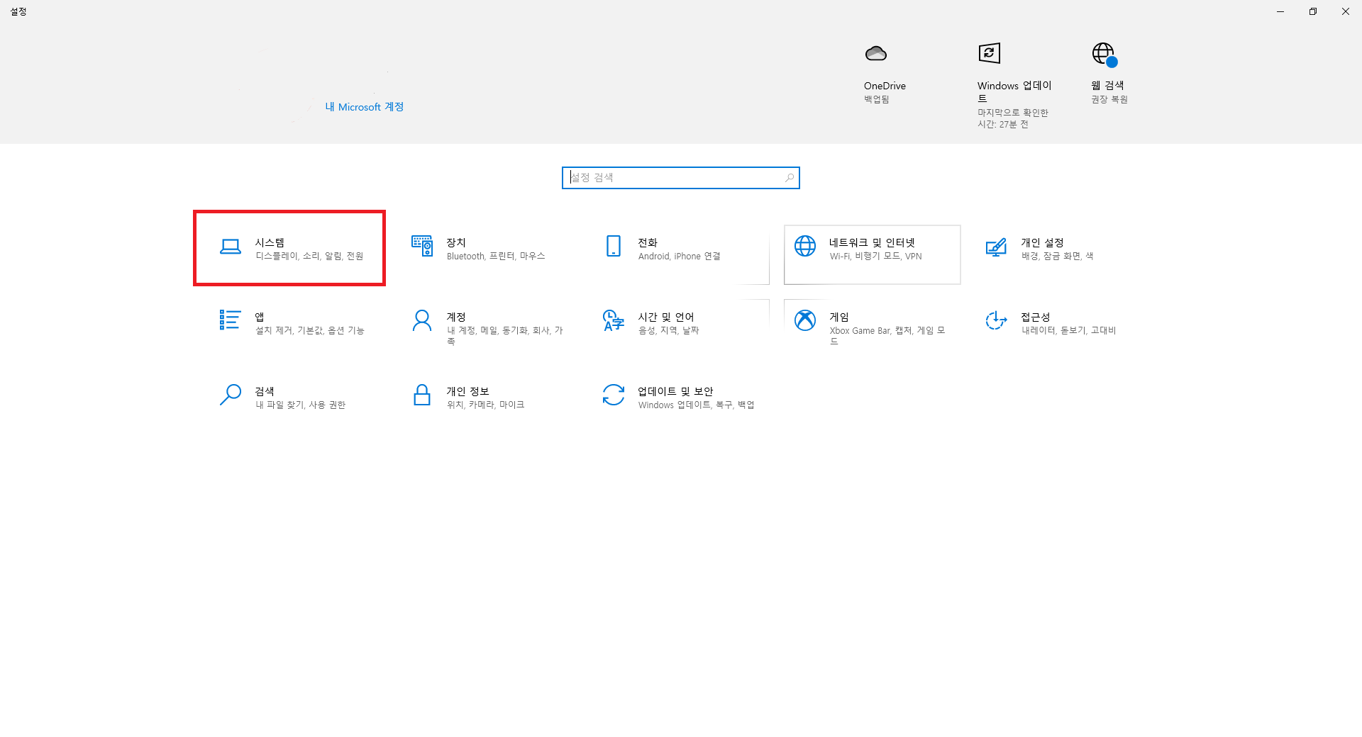 이제 본격적인 설정을 바꿔볼 겁니다. 먼저 설정으로 이동하셔서 '시스템'으로 갑니다.
