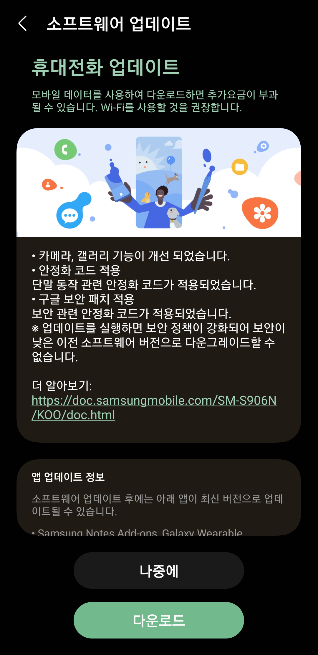 S22 시리즈 사용자 분들은 이번 업데이트 꼭! 해보셔야겠습니다. 5.1 이후 또 한번 매우 만족을 날릴 수 있는 업데이트가 나와서 아주 마음에 듭니다-