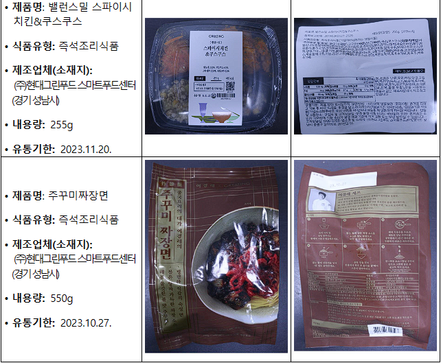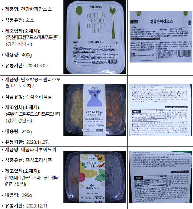 제조업체(소재지): (주)현대그린푸드 스마트푸드센터(경기 성남시)